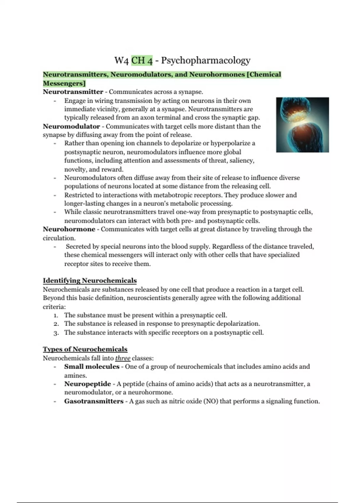 Neurotransmitters, Neuromodulators, and Neurohormones [Chemical
