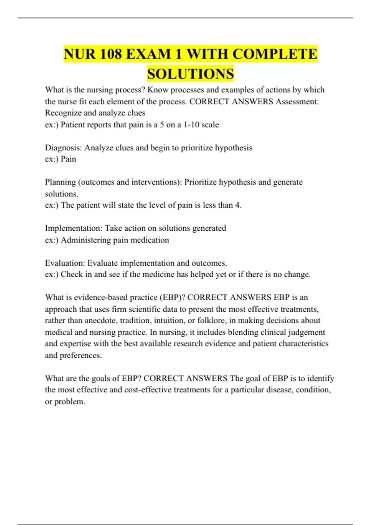 NUR 108 EXAM 1 WITH COMPLETE SOLUTIONS