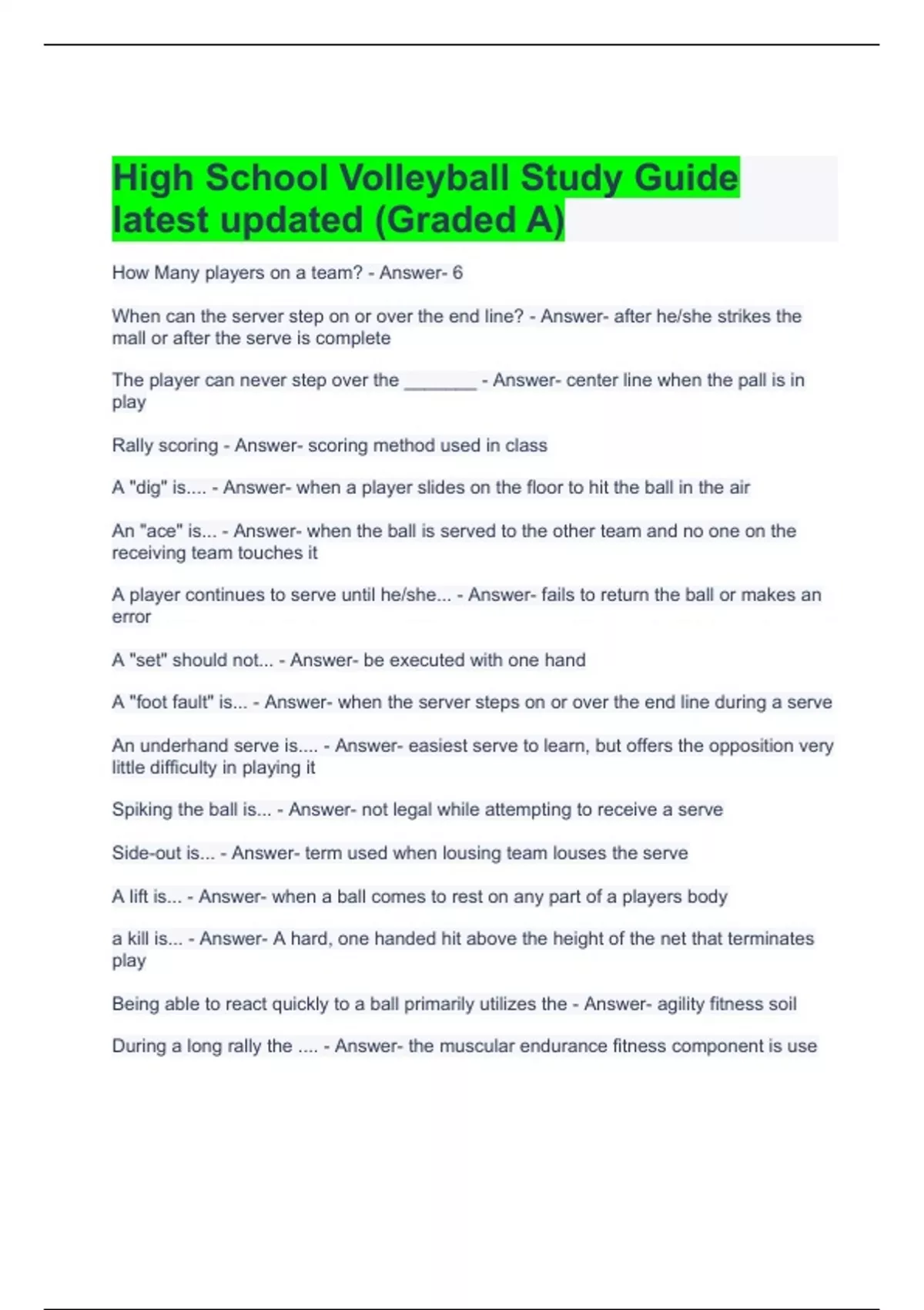 high school volleyball study guide latest updated