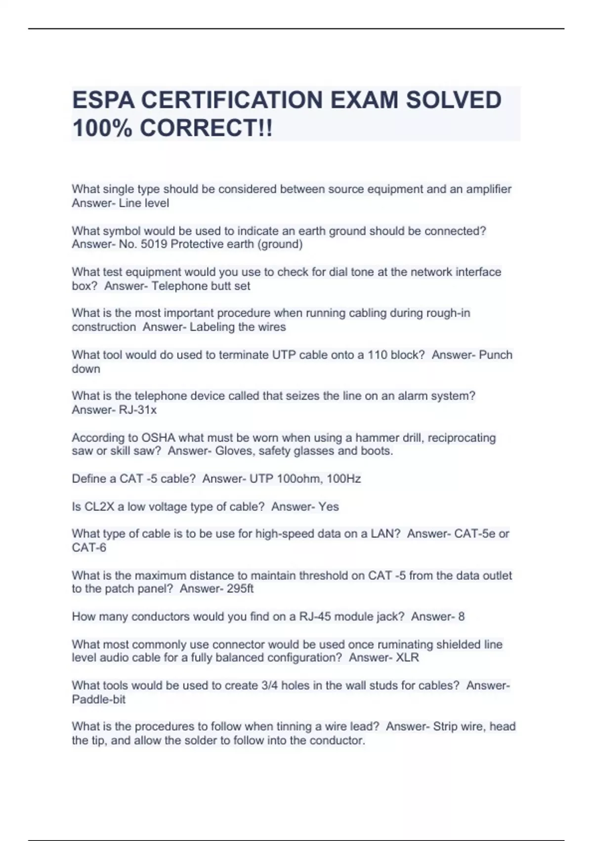 ESPA CERTIFICATION EXAM SOLVED 100% CORRECT!!