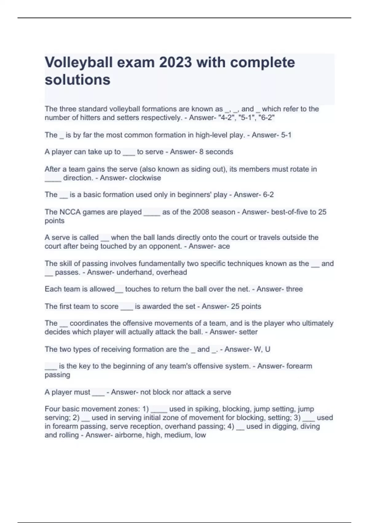 Volleyball exam 2023 with complete solutions