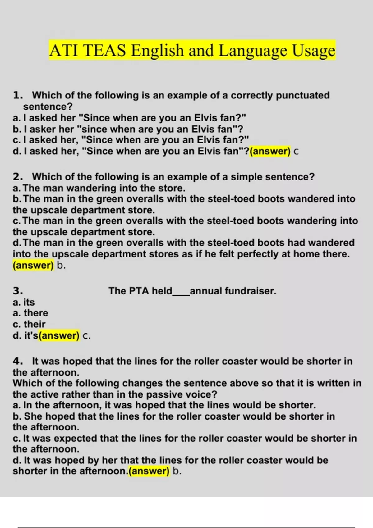 ATI TEAS 7 English and Language Usage Questions and Answers Latest (2023 / 2024) (Verified Answers)