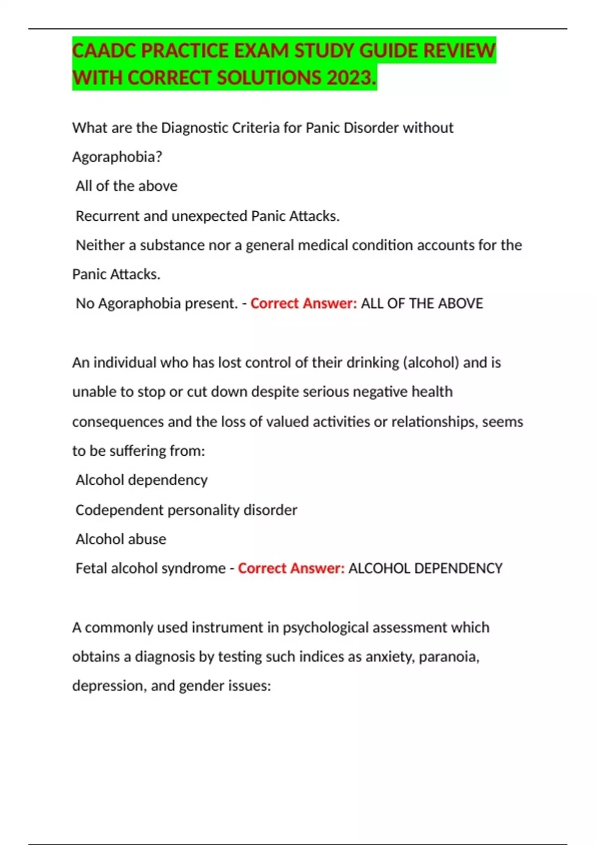 ,CAADC PRACTICE EXAM STUDY GUIDE REVIEW