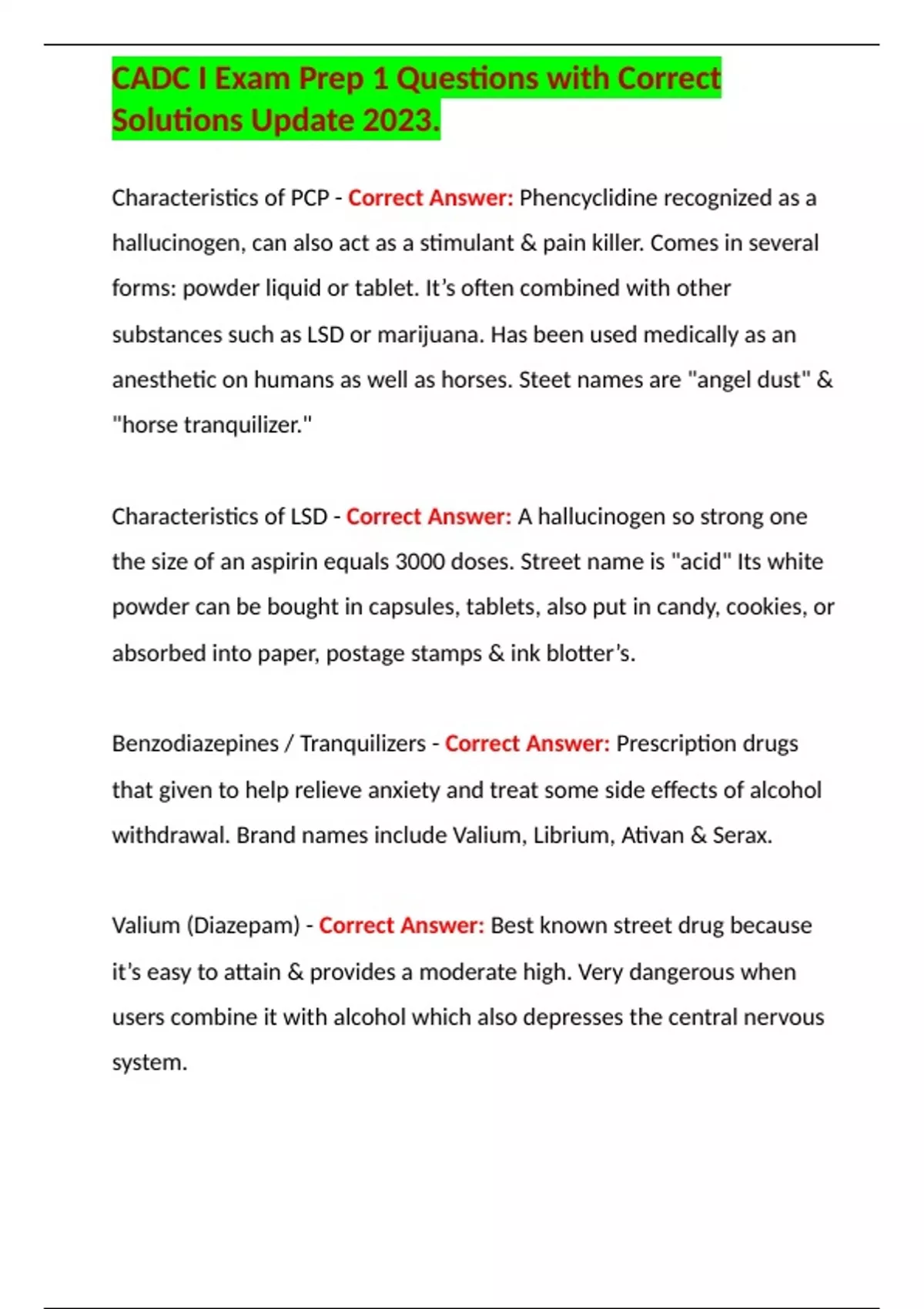 , CADC I Exam Prep 1 Questions with Correct