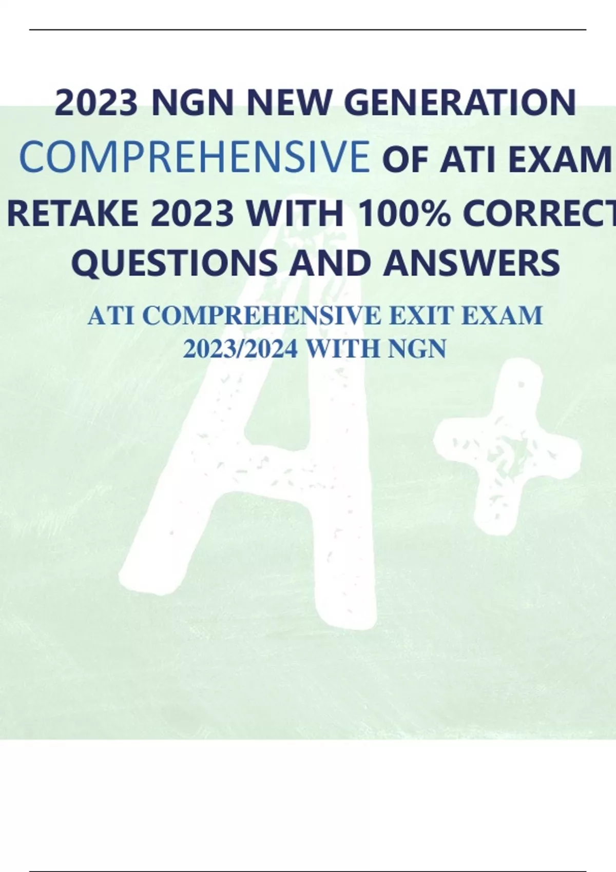 2023 NGN NEW GENERATION COMPREHENSIVE OF ATI EXAM RETAKE 2023 WITH 100% CORRECT QUESTIONS AND ANSWERS ATI COMPREHENSIVE EXIT EXAM 2023/2024 WITH NG