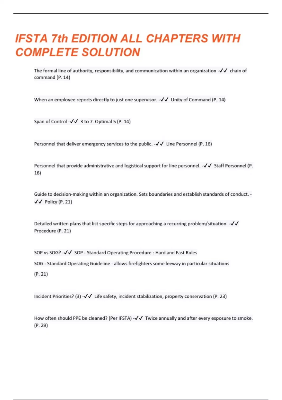 IFSTA 7th EDITION ALL CHAPTERS with complete solution