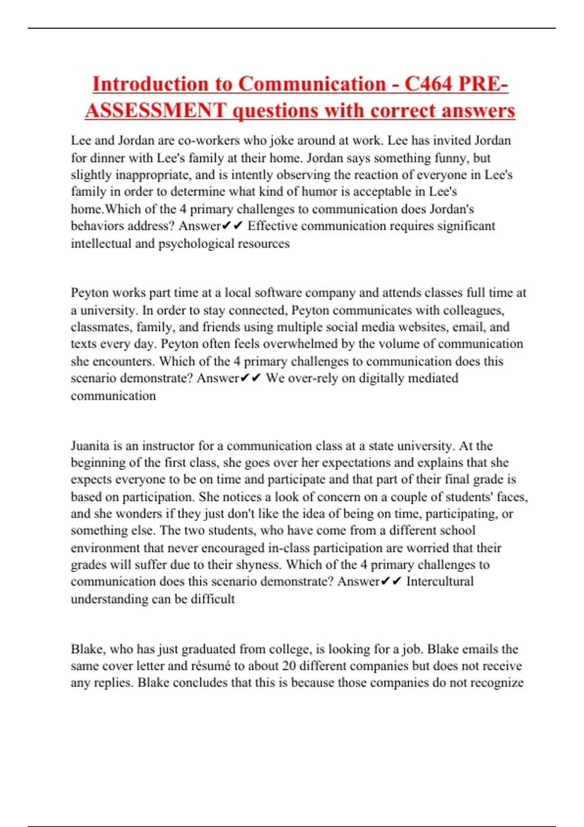 Introduction to Communication - C464 PRE-ASSESSMENT questions with correct answers