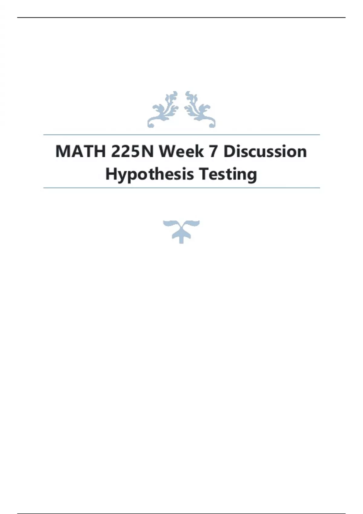 MATH 225N Week 7 Discussion Hypothesis Testing.