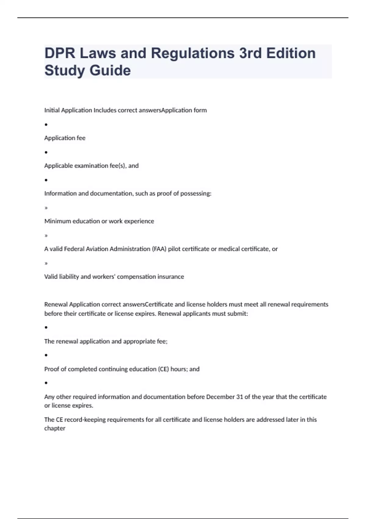 Initial Application Includes correct answersApplication form • Application fee • Applicable examination fee(s), and • Information and documentation, such as proof of possessing: » Minimum education or work experience » A valid Federal Aviation Administration (FAA) pilot certificate or medical certificate, or » Valid liability and workers' compensation insurance