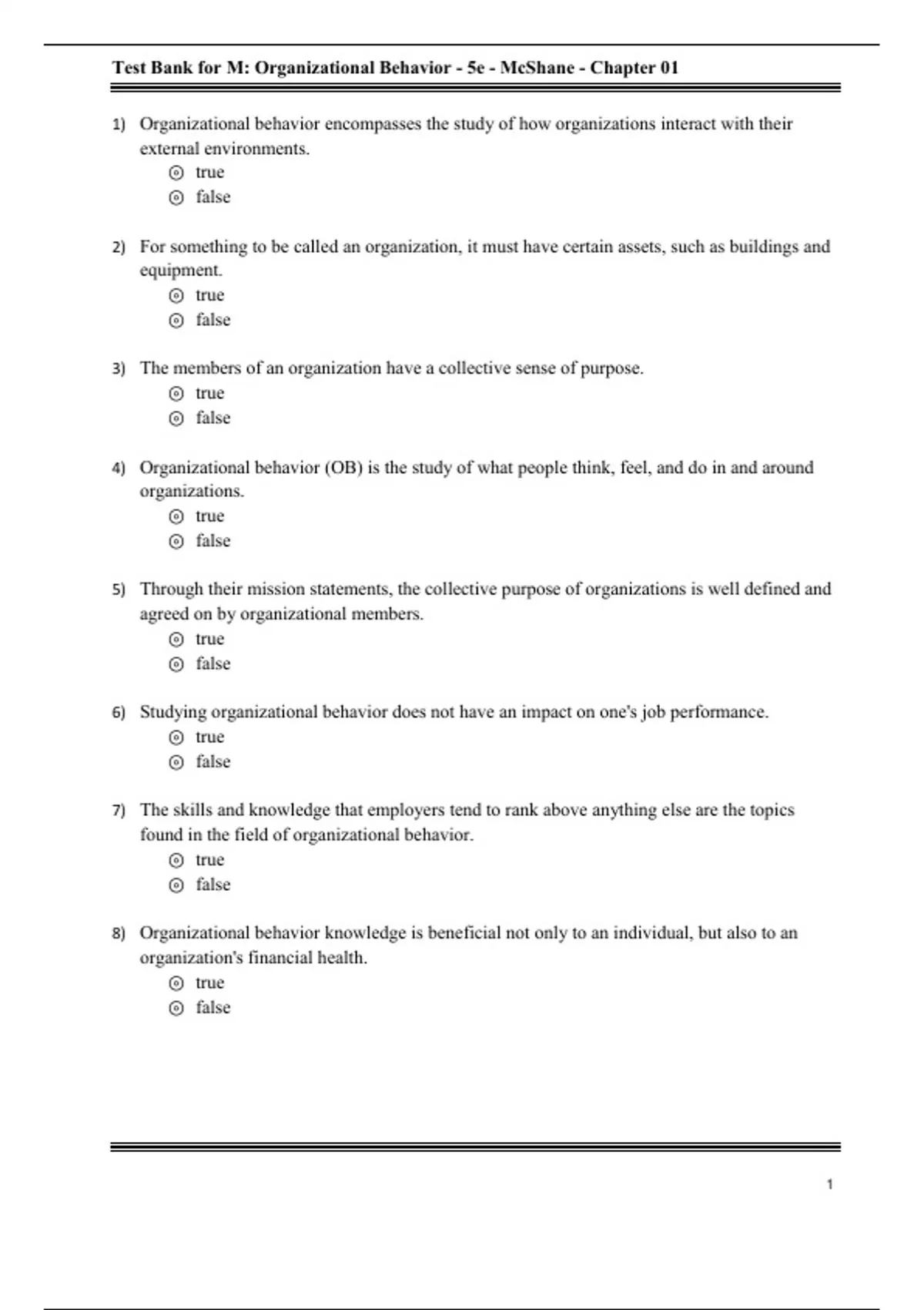 Test Bank For M: Organizational Behavior, 5th Edition All Chapters
