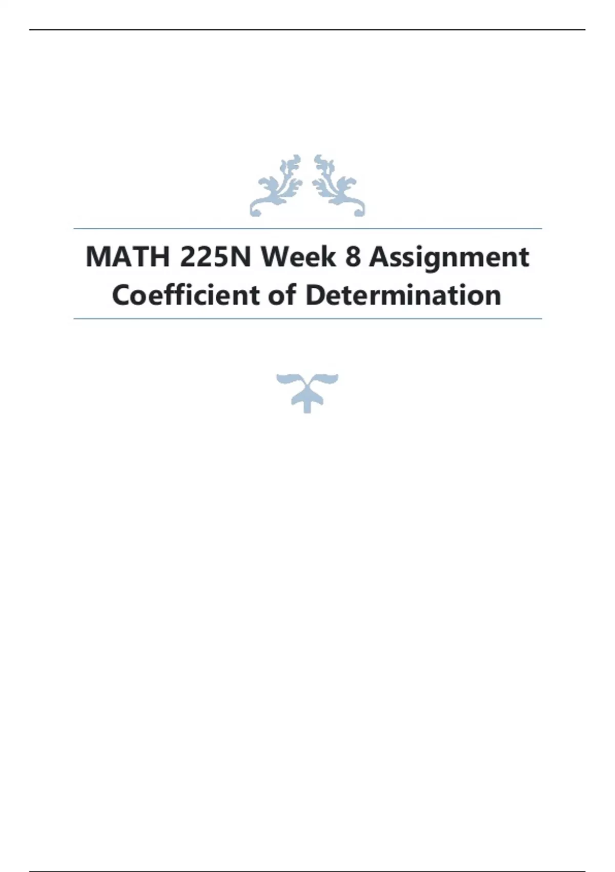 MATH 225N Week 8 Assignment Coefficient of Determination.
