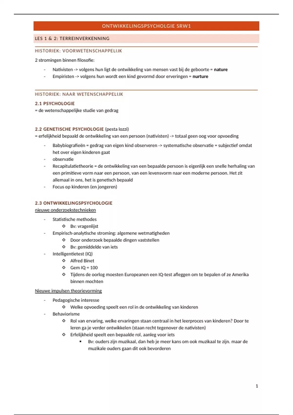 ONTWIKKELINGSPSYCHOLGIE SRW1