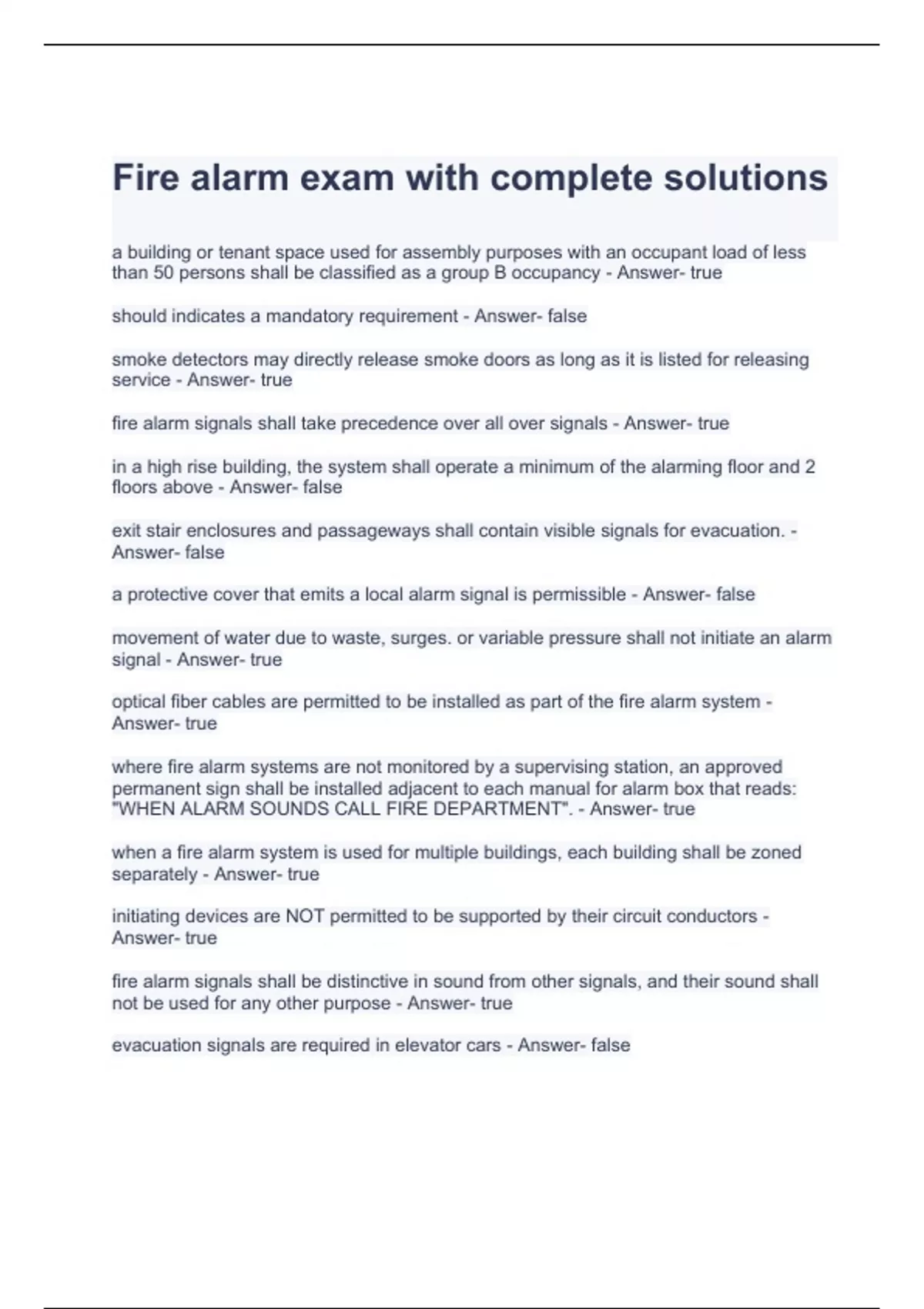 Fire alarm exam with complete solutions