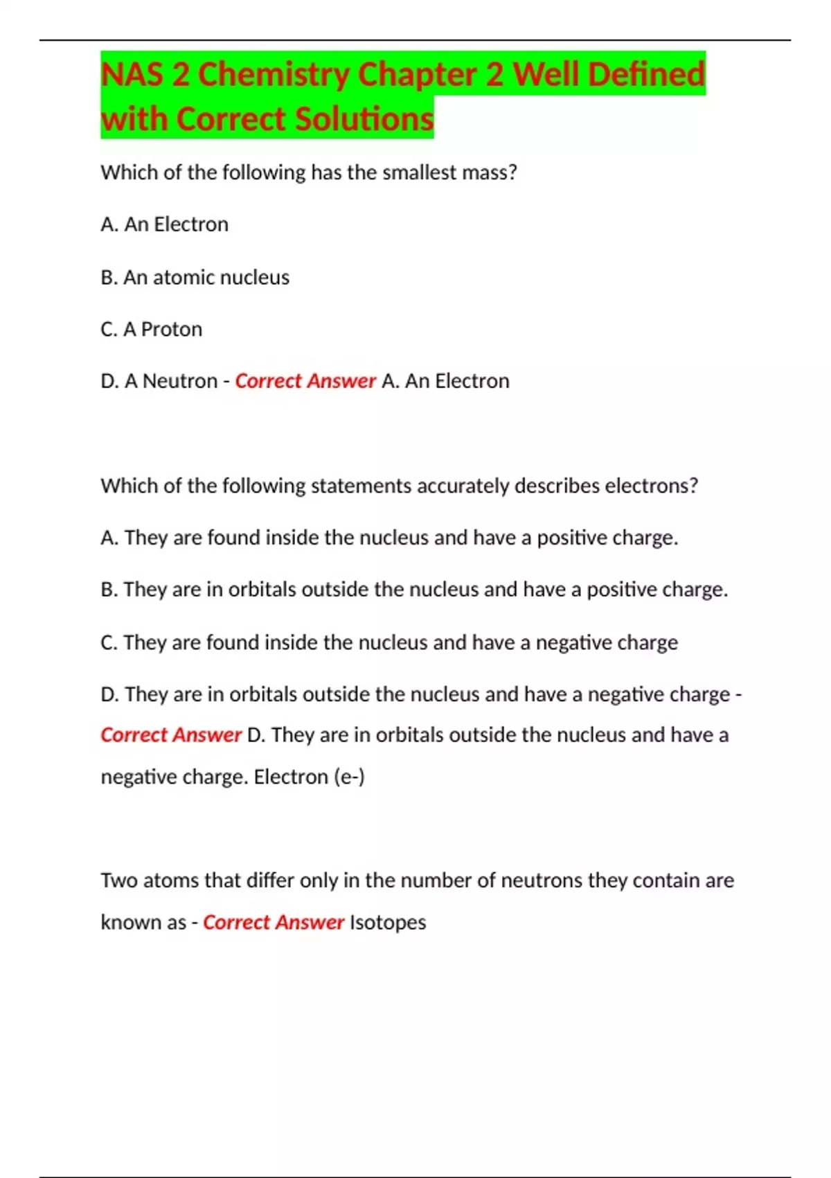 NAS 2 Chemistry Chapter 2 Well Defined with Correct Solutions