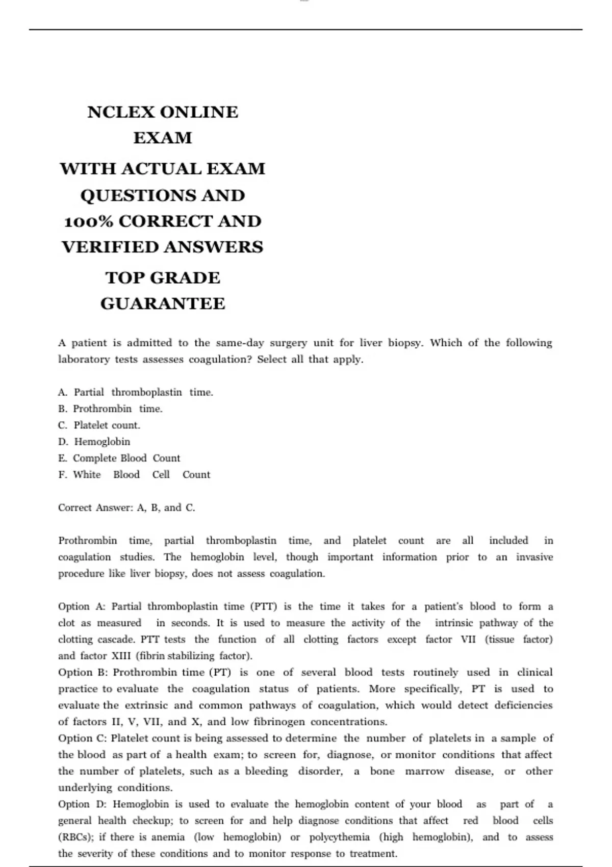 NCLEX ONLINE EXAM WITH ACTUAL EXAM QUESTIONS AND 100% CORRECT AND VERIFIED ANSWERS TOP GRADE GUARANTEE