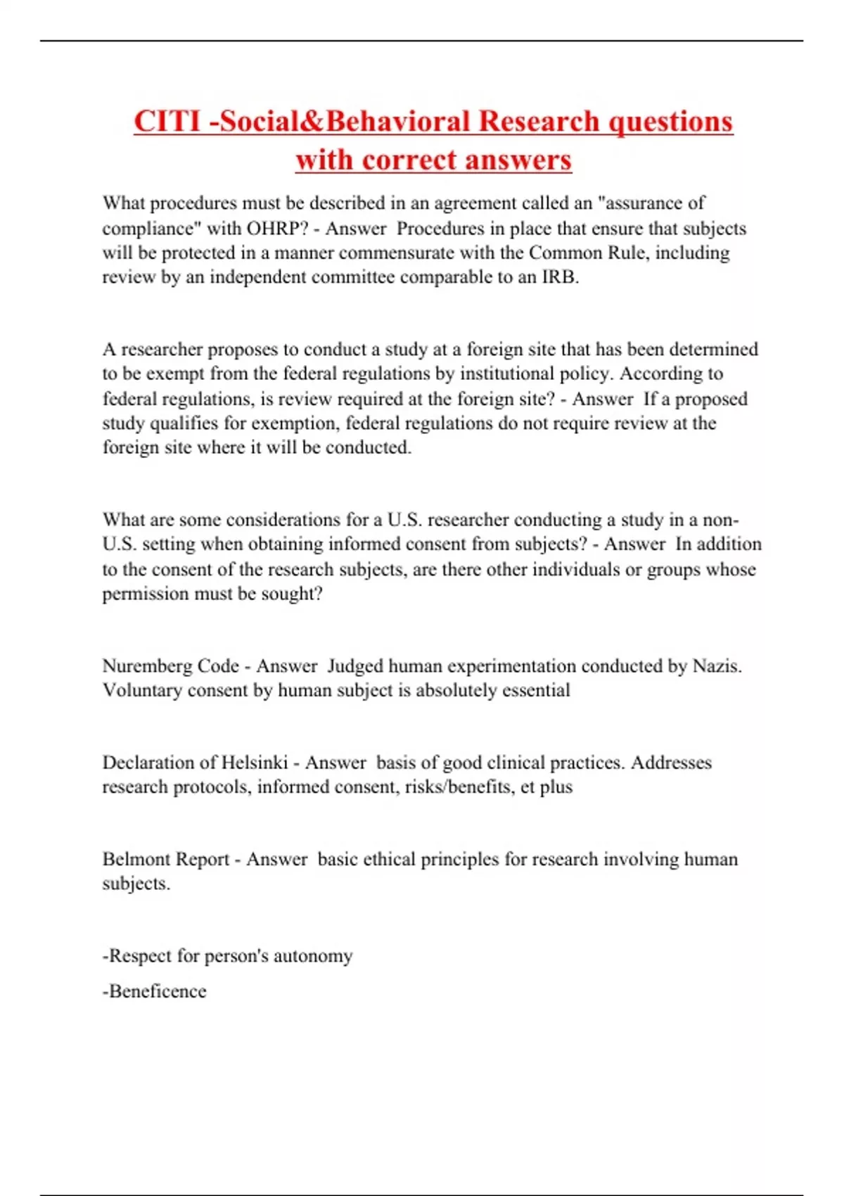 CITI -Social&Behavioral Research questions with correct answers