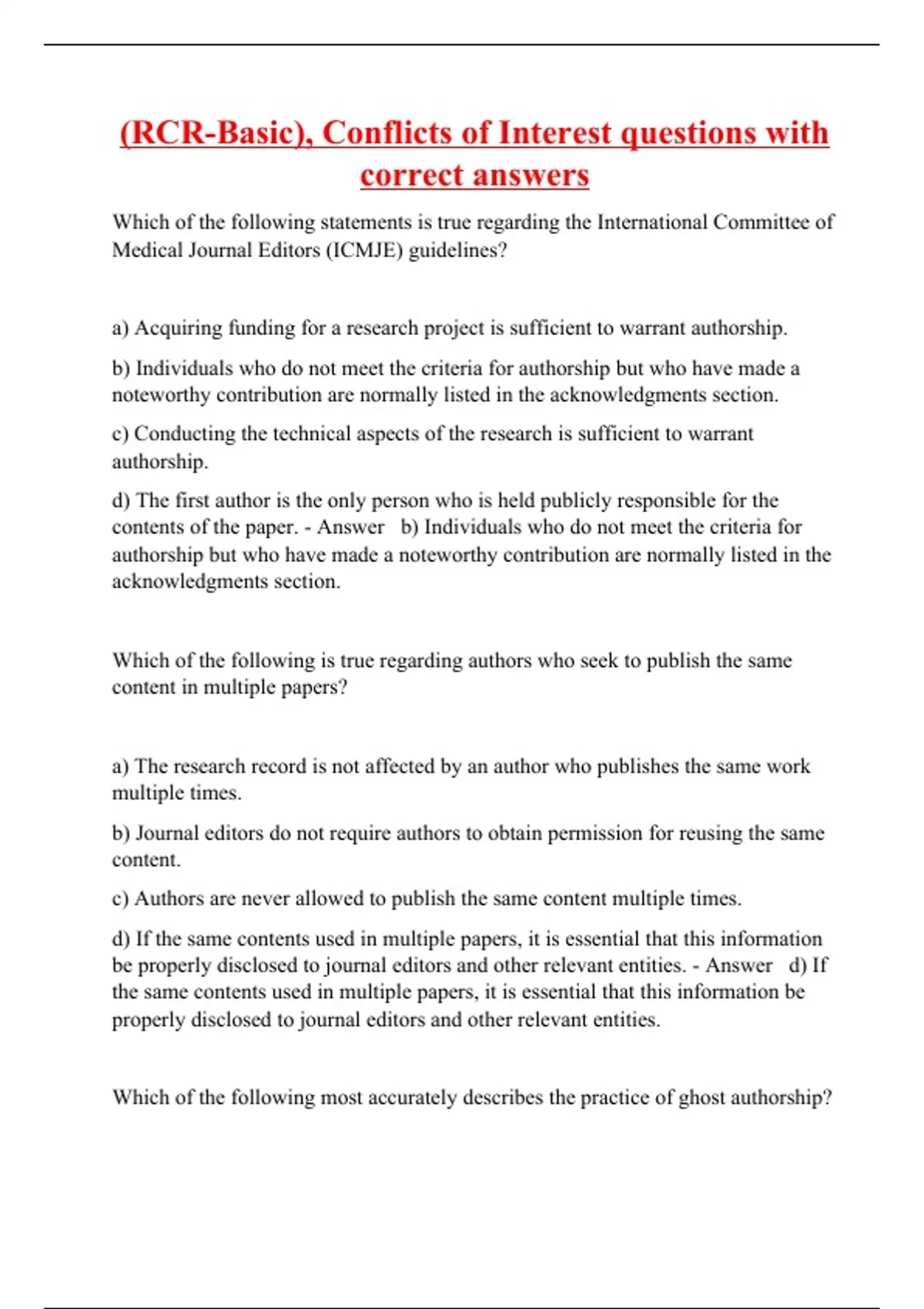 (RCR-Basic), Conflicts of Interest questions with correct answers
