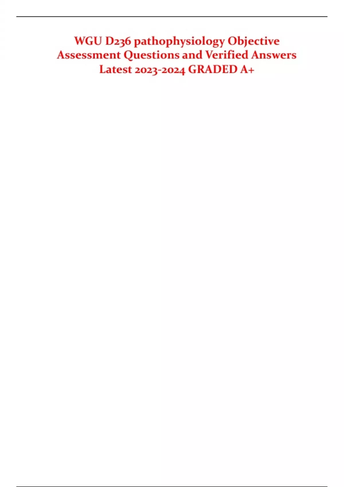 WGU D236 pathophysiology Objective Assessment Questions and Verified Answers Latest GRADED A+