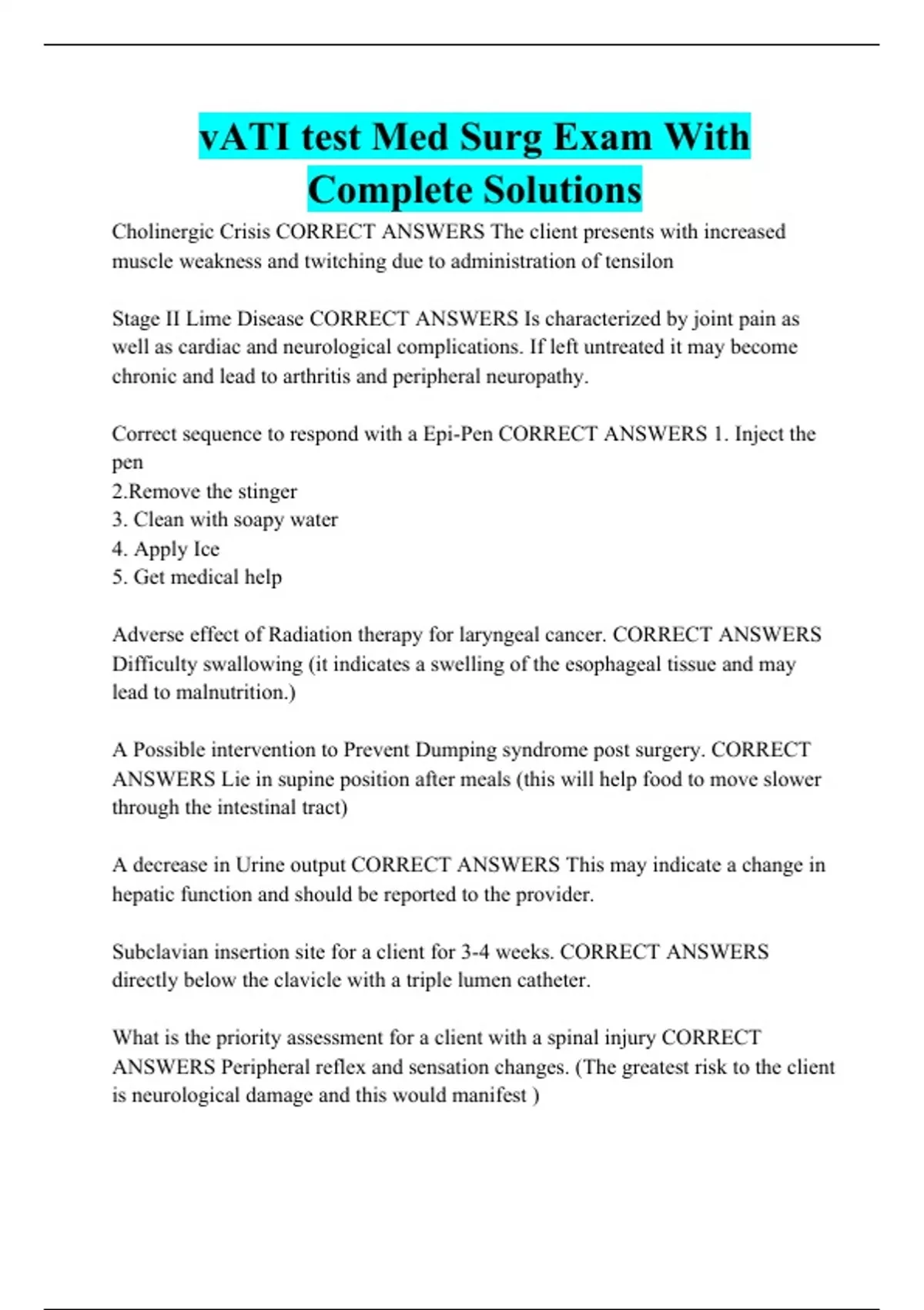vATI test Med Surg Exam With Complete Solutions