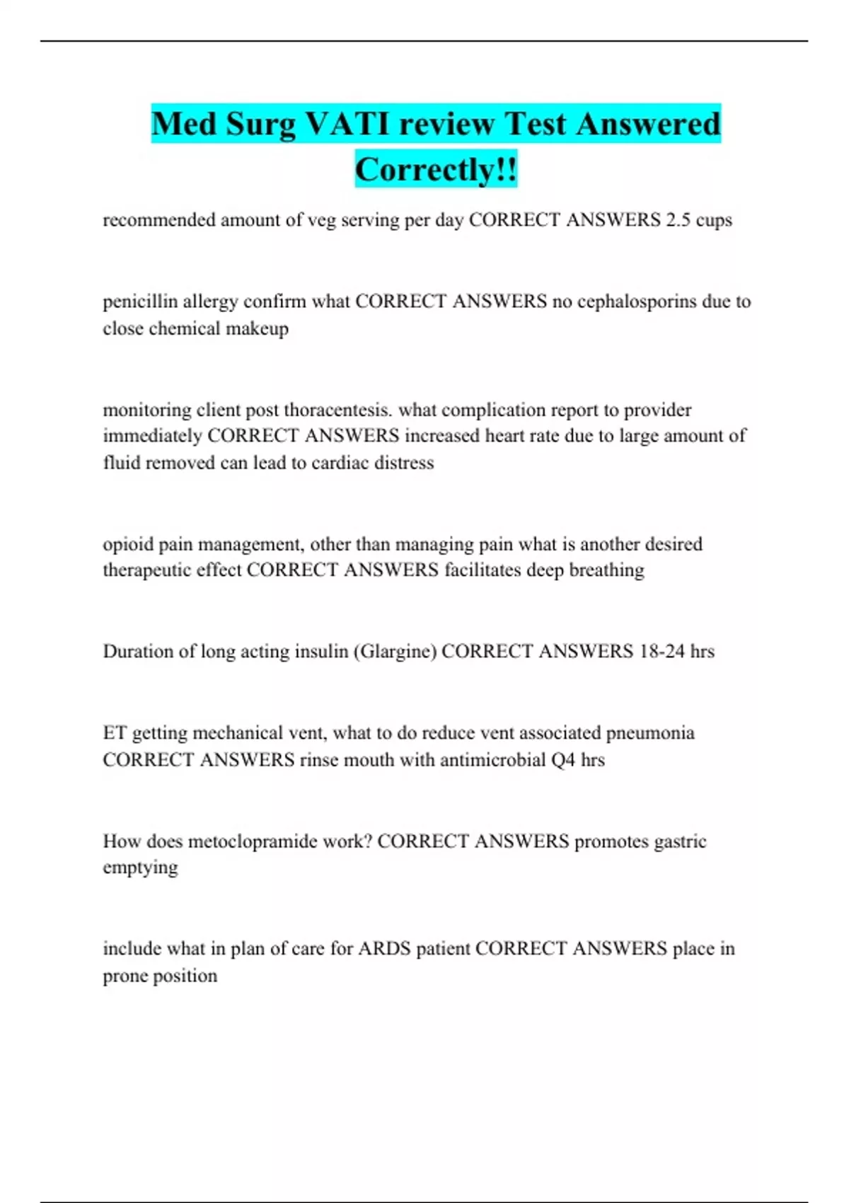 Med Surg VATI review Test Answered Correctly!!