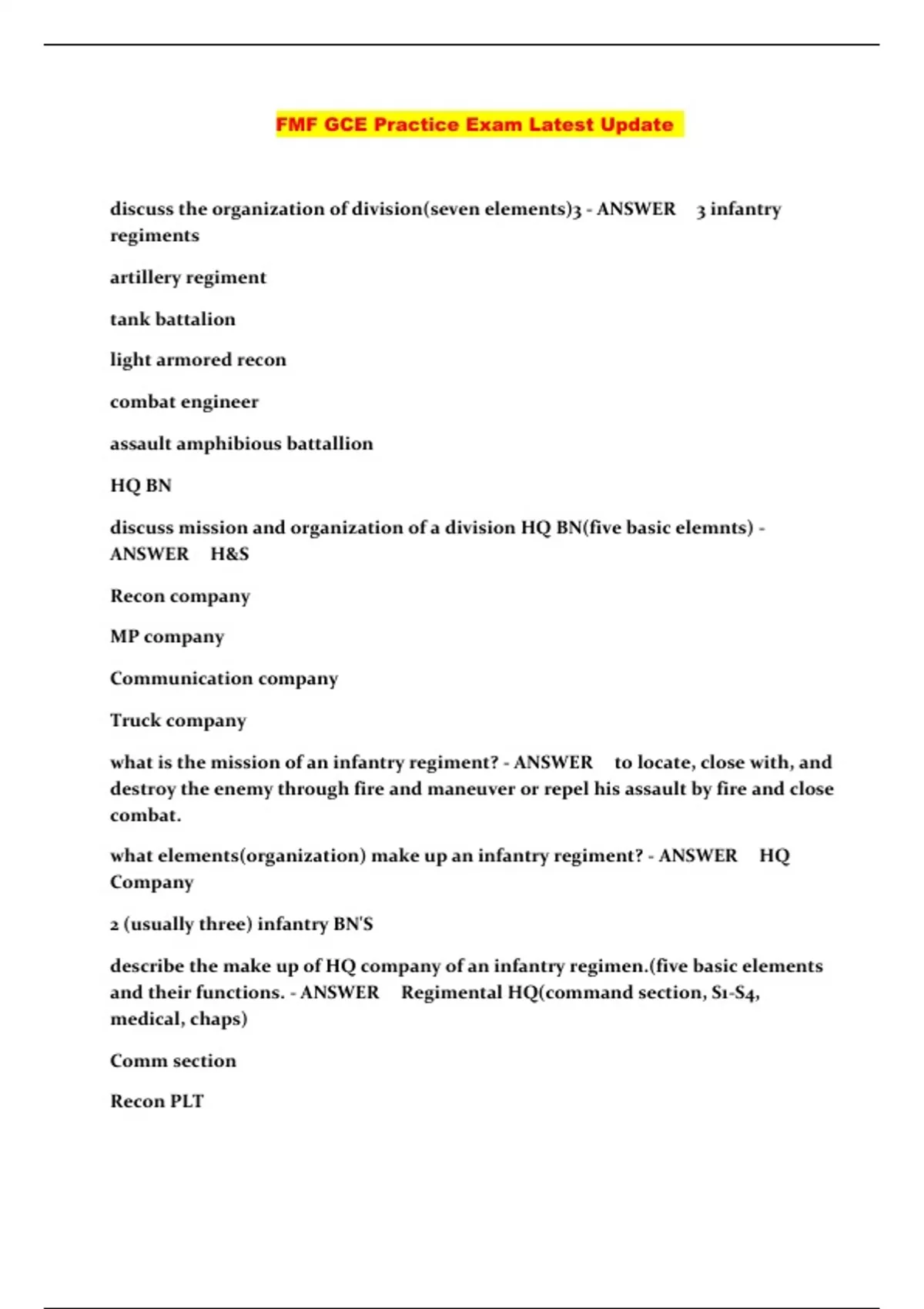 FMF GCE Practice Exam Latest Update ...