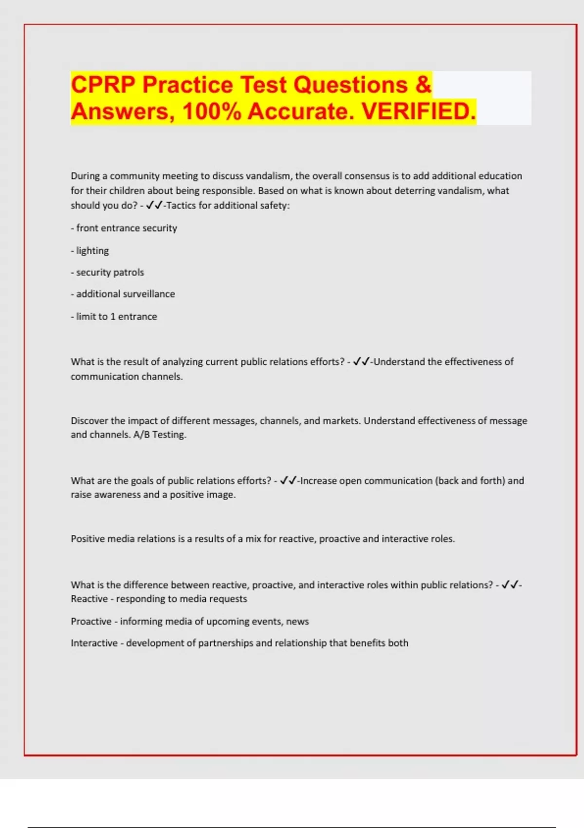 CPRP Practice Test Questions & Answers, 100% Accurate. VERIFIED.