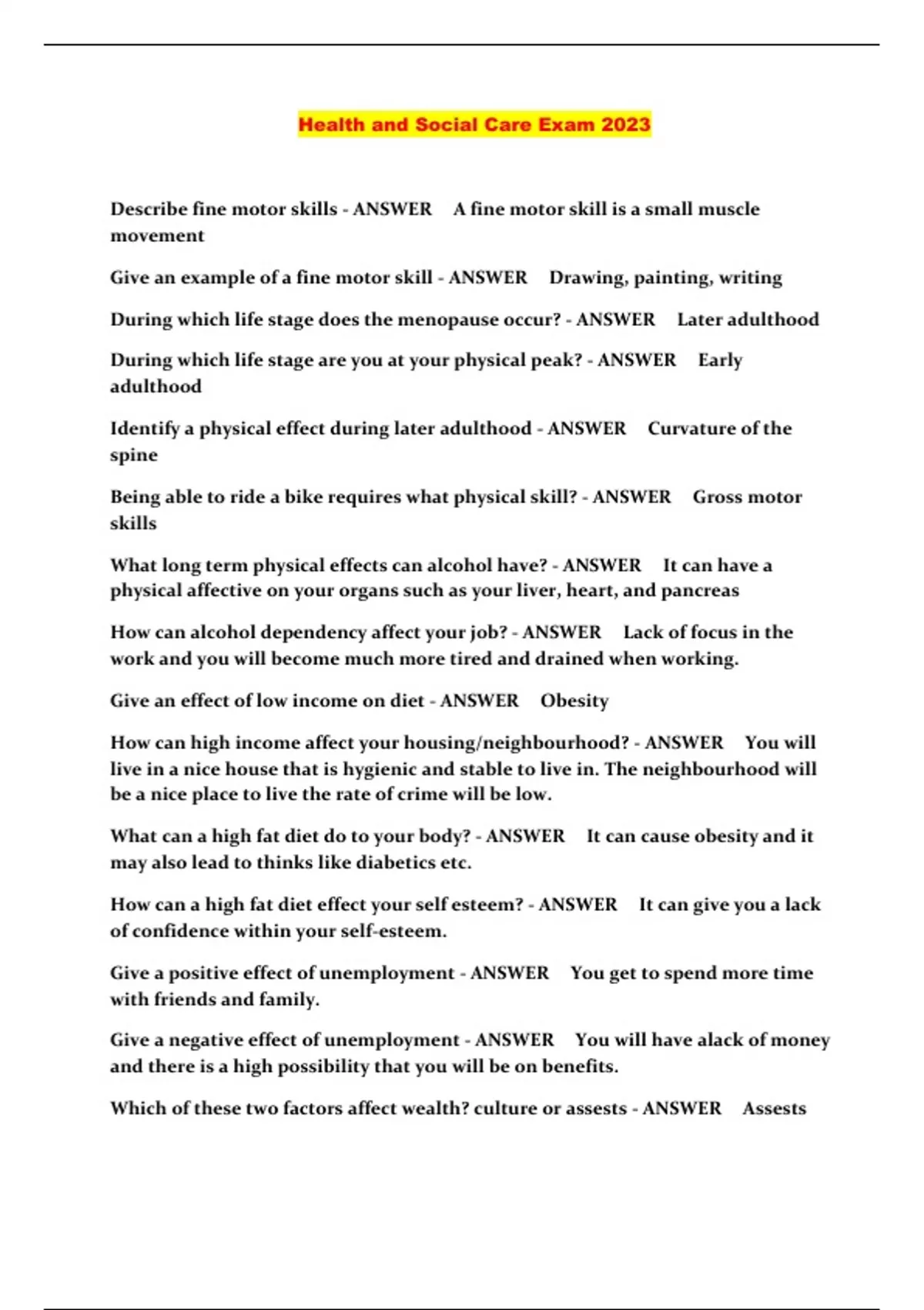 Health and Social Care Exam 2023...