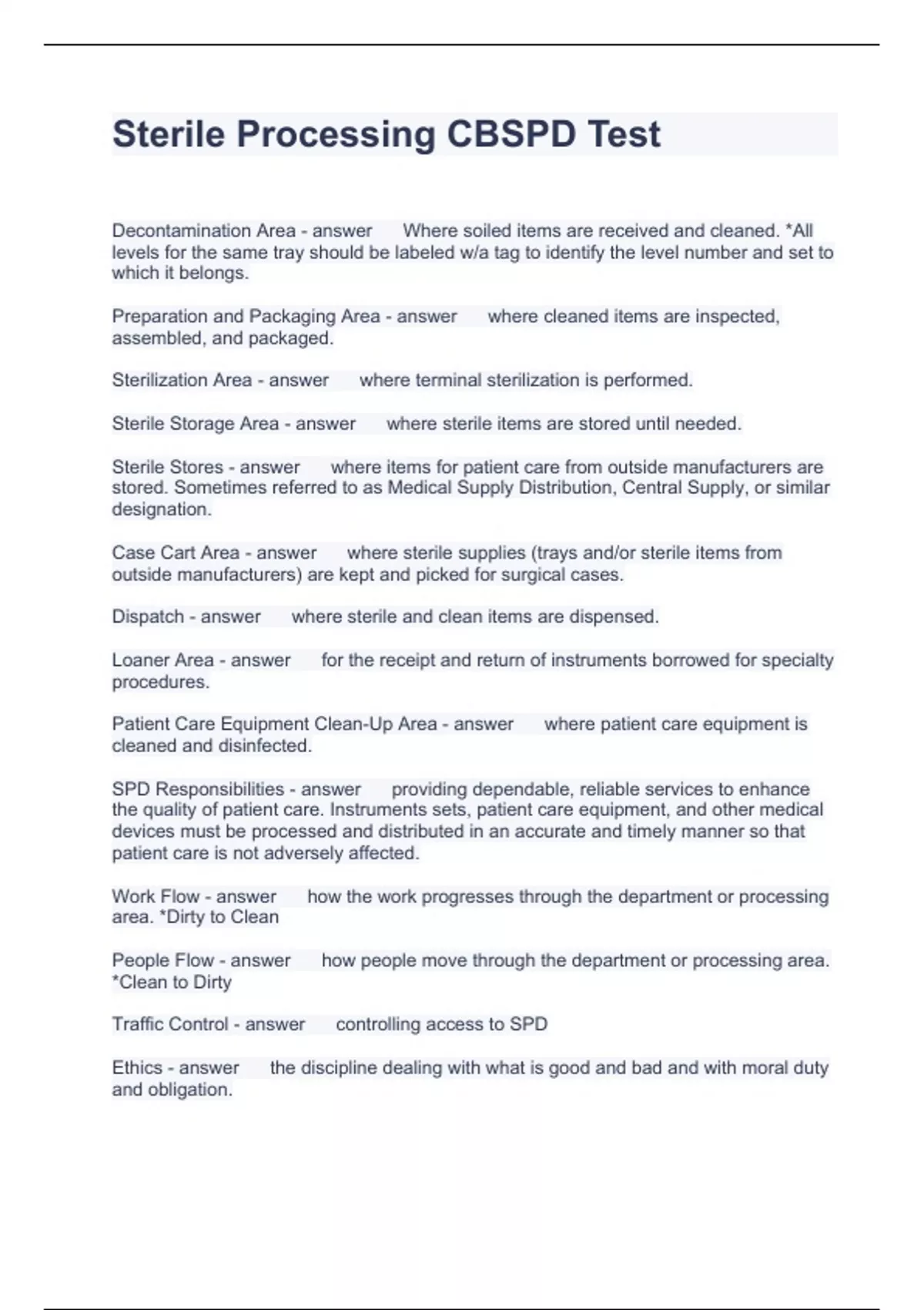 Sterile Processing CBSPD Test Questions and Answers 2023