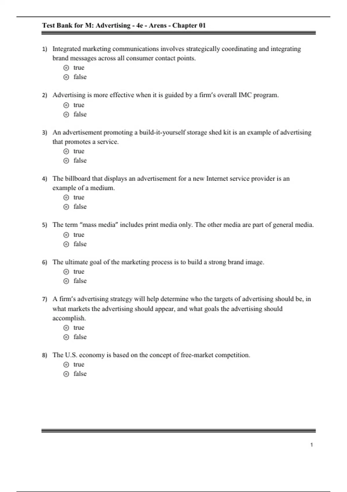 Test Bank For M: Advertising, 4th Edition All Chapters