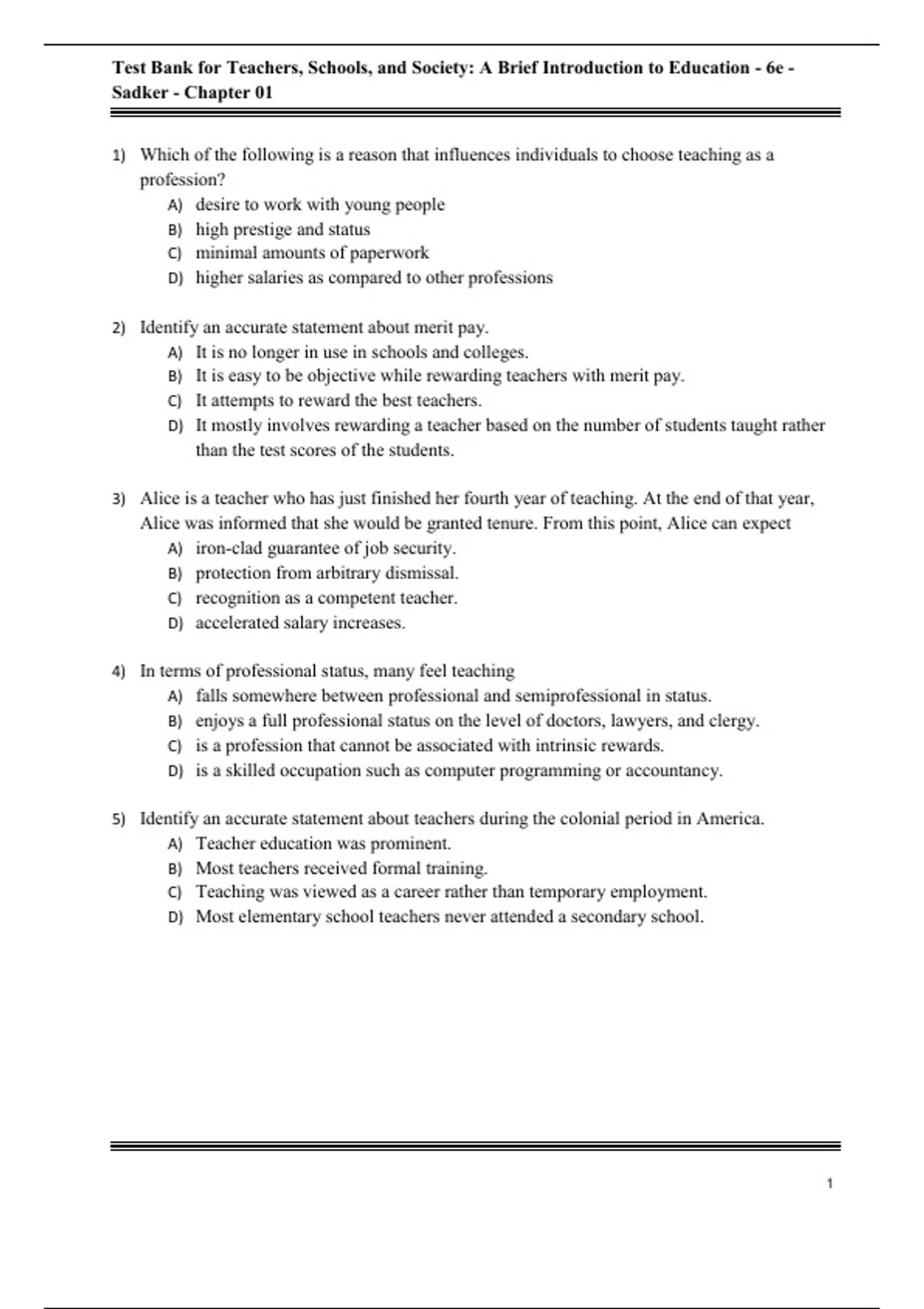 Test Bank For Teachers, Schools, and Society: A Brief Introduction to Education, 6th Edition All Chapters