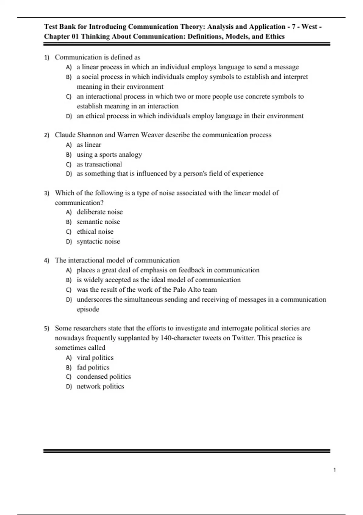 Test Bank For Introducing Communication Theory: Analysis and Application, 7th Edition All Chapters