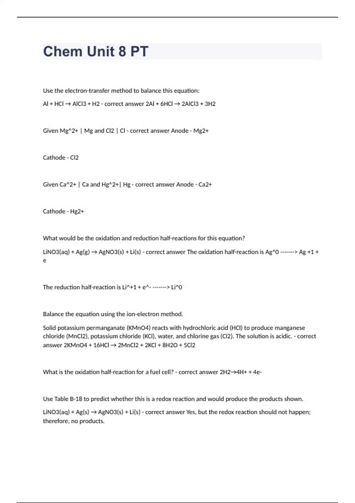 Exam of 3 pages for the course med chem at med chem (Chem Unit 8 PT)