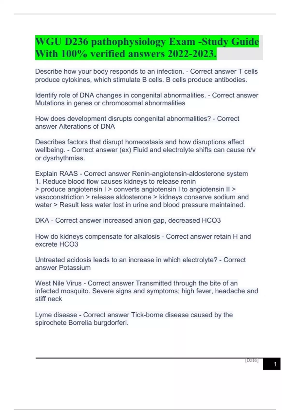 WGU D236 pathophysiology Exam -Study Guide With 100% verified answers .WGU D236 pathophysiology Exam -Study Guide With 100% verified answers .