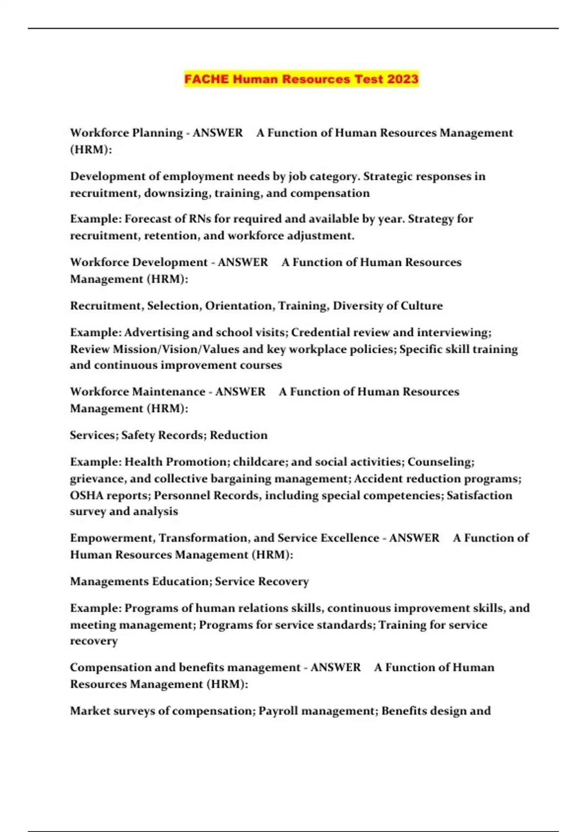 FACHE Human Resources Test 2023..