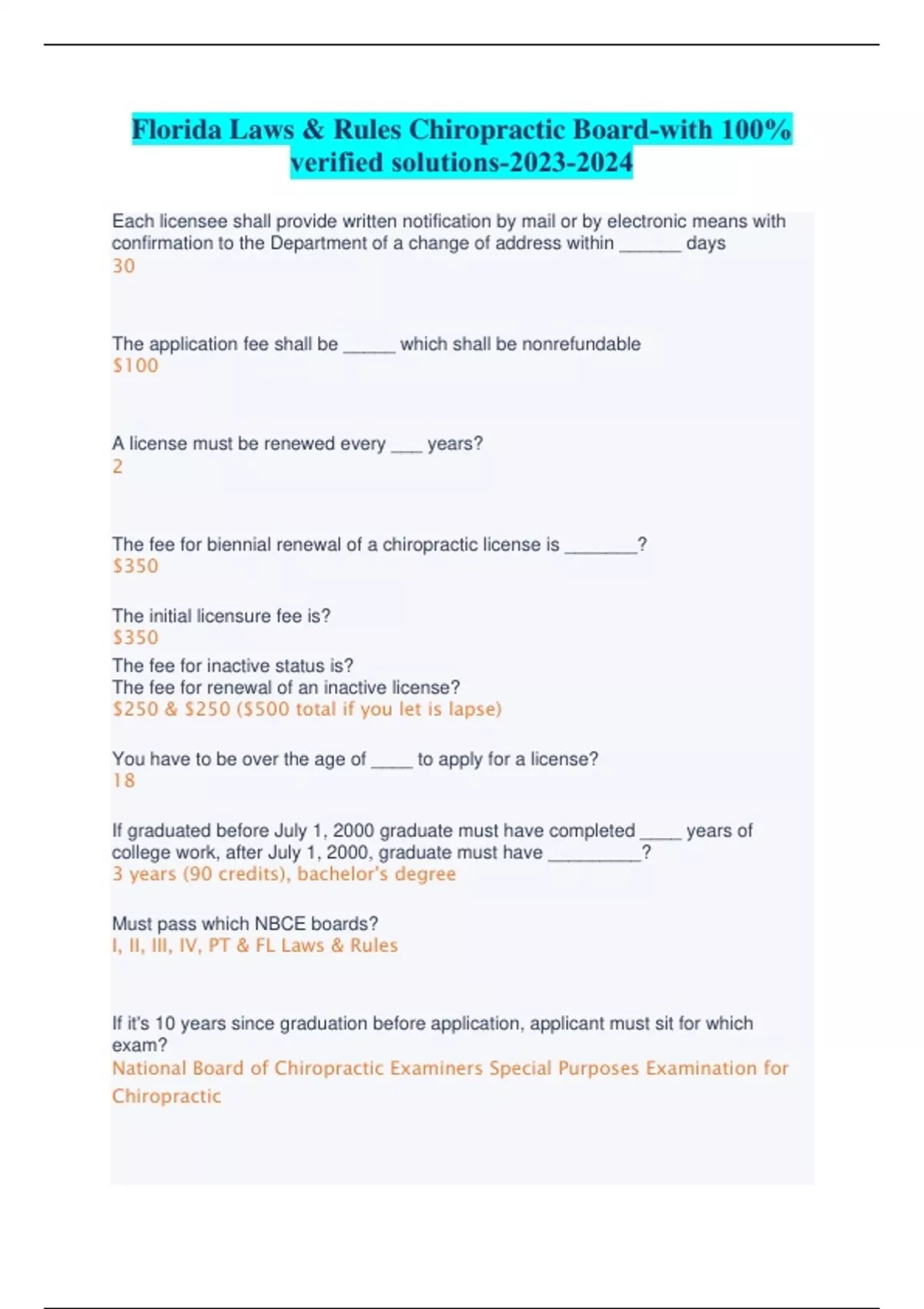 Florida Laws & Rules Chiropractic Board-with 100% verified solutions-