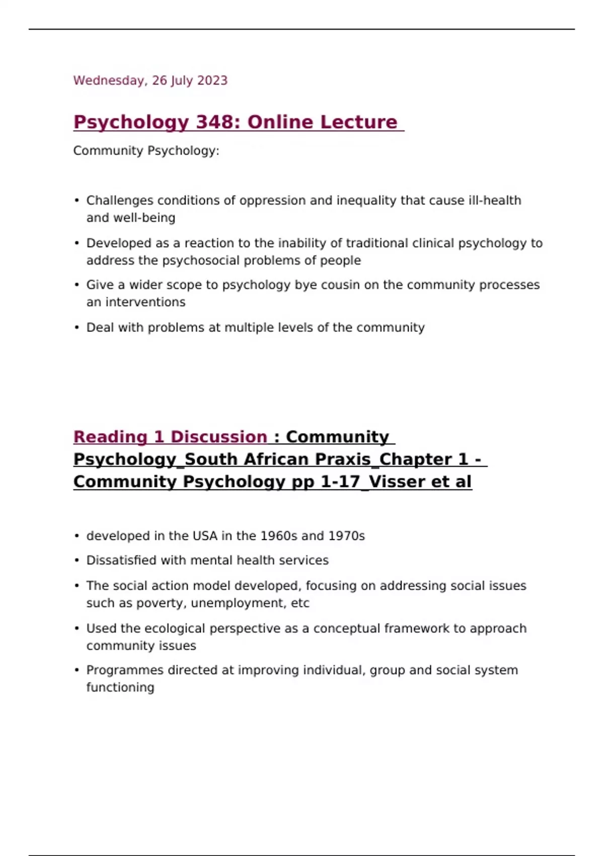 Reading 1: Community Psychology_South African