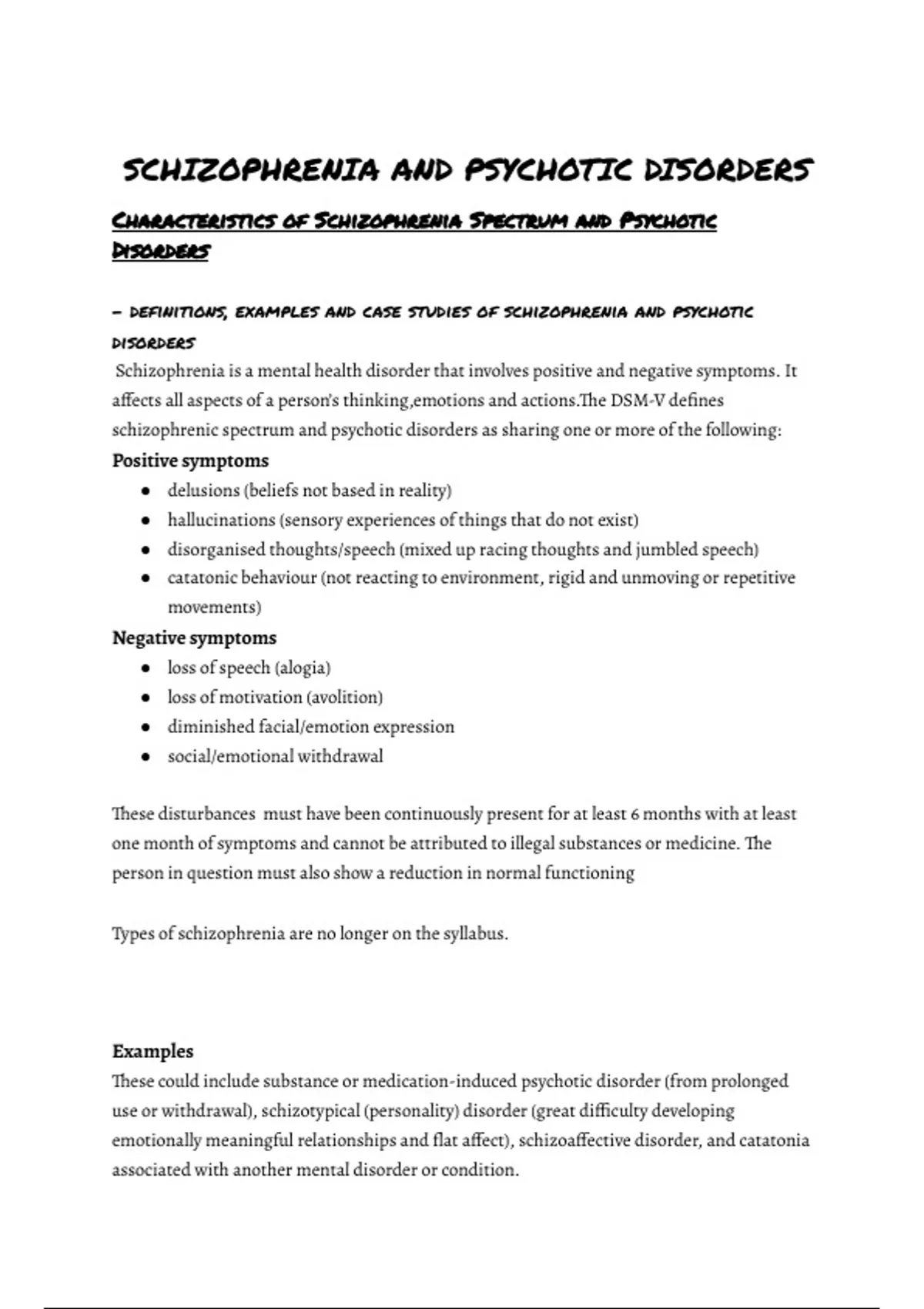 – definitions, examples and case studies of schizophrenia and psychotic