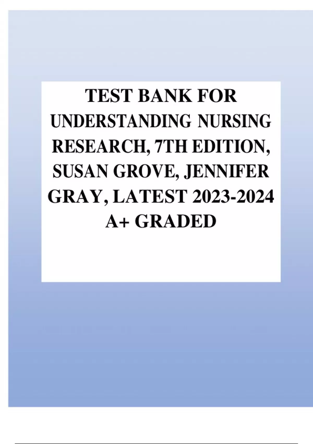 TEST BANK FOR UNDERSTANDING NURSING RESEARCH, 7TH EDITION, SUSAN GROVE, JENNIFER GRAY, LATEST A+ GRADED