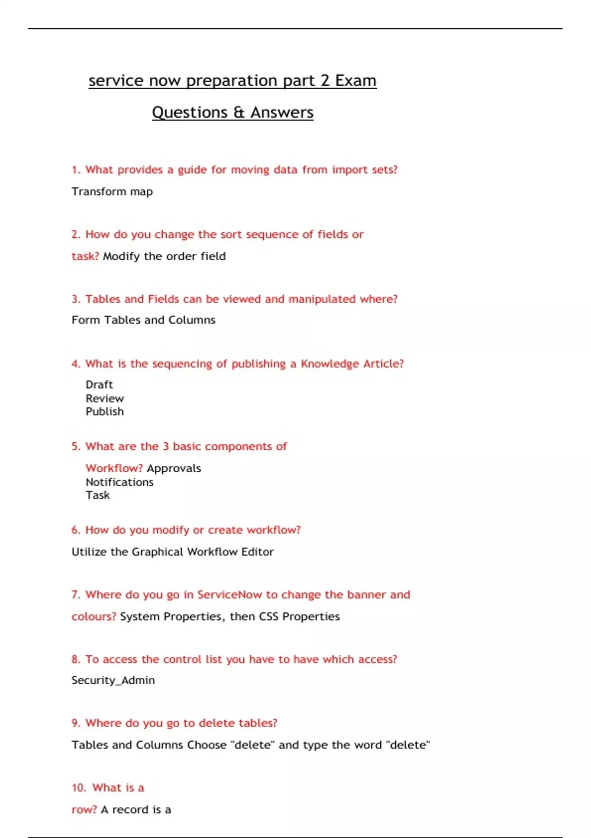 service now preparation part 2 Exam Questions & Answers