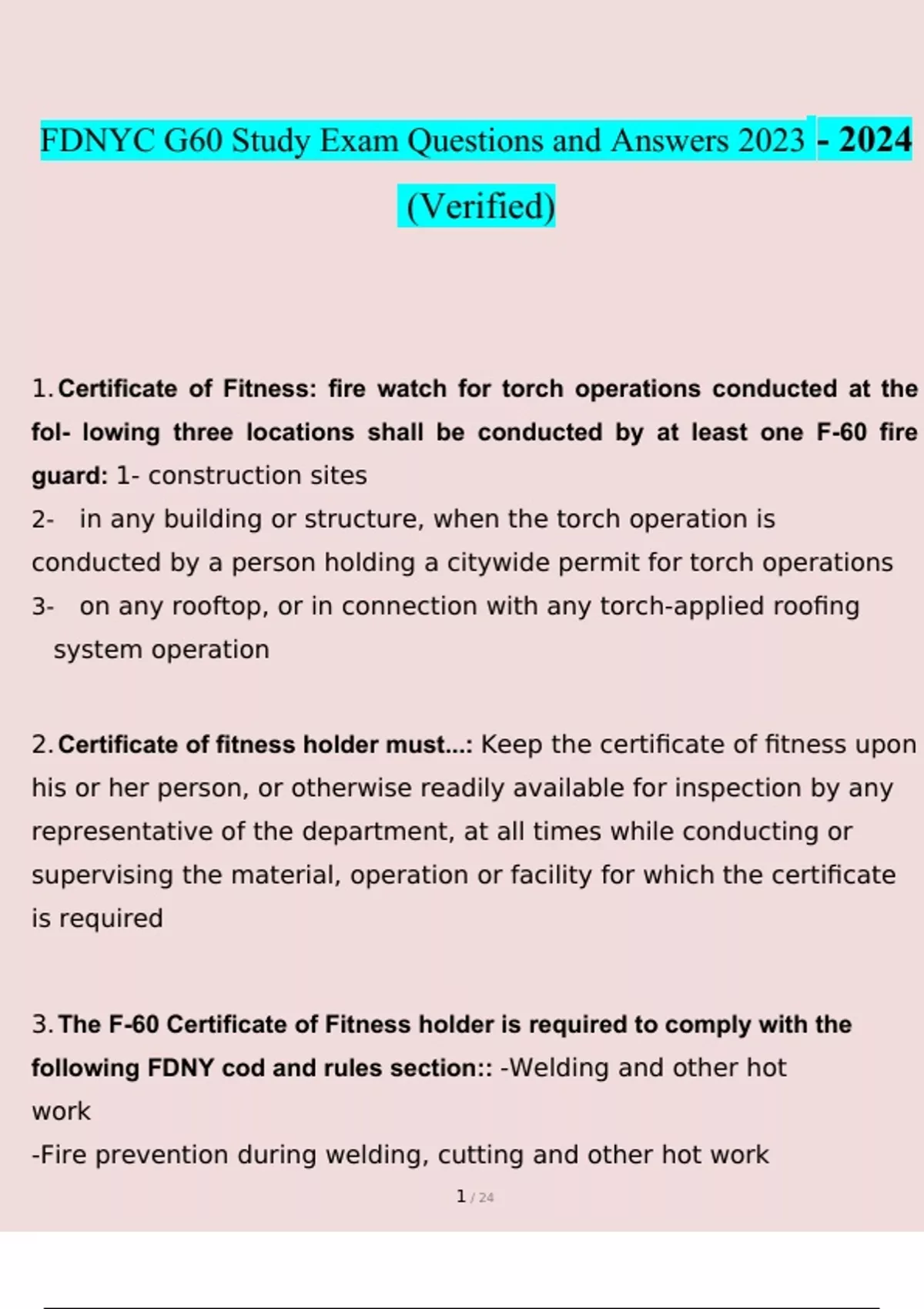 FDNYC G60 FIRE GUARD 2023 STUDY BUNDLE PACK SOLUTION (Questions and Answers )(Verified Answers)