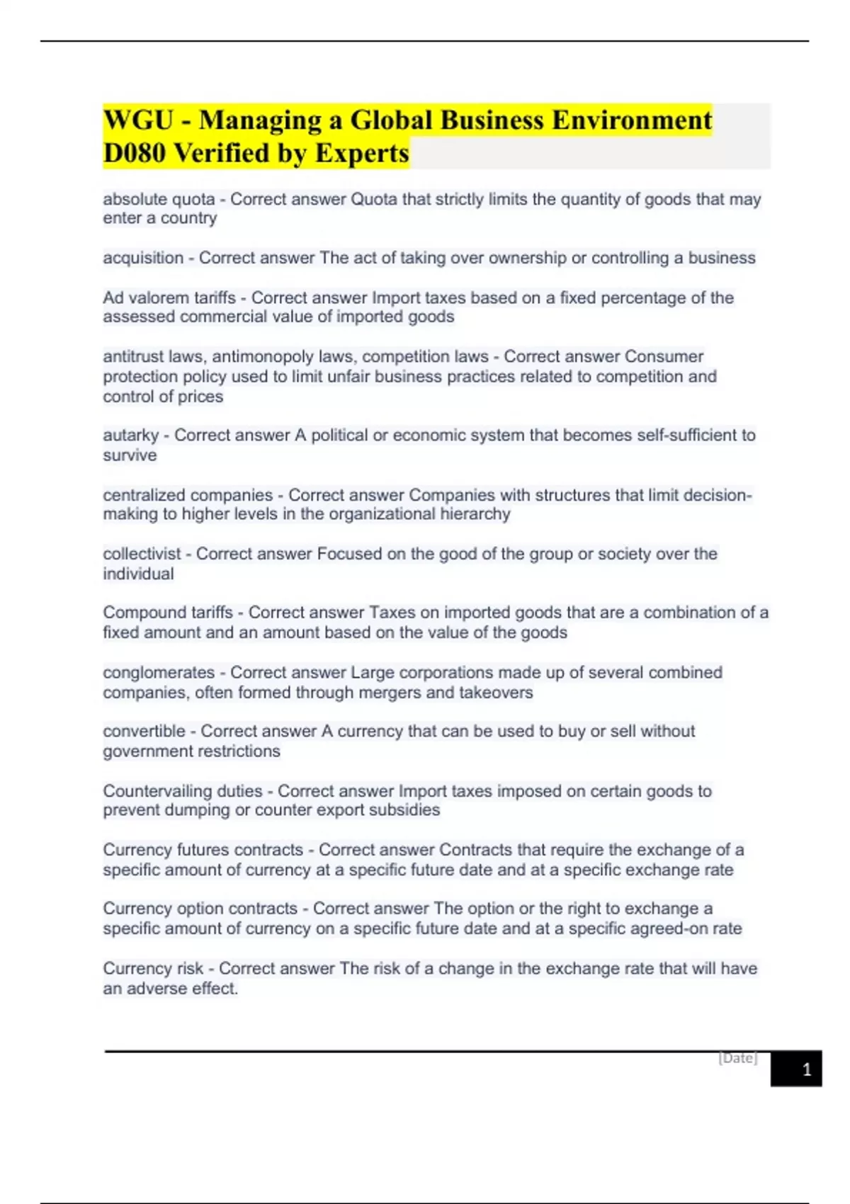 WGU - Managing a Global Business Environment D080 Verified by ExpertsWGU - Managing a Global Business Environment D080 Verified by Experts