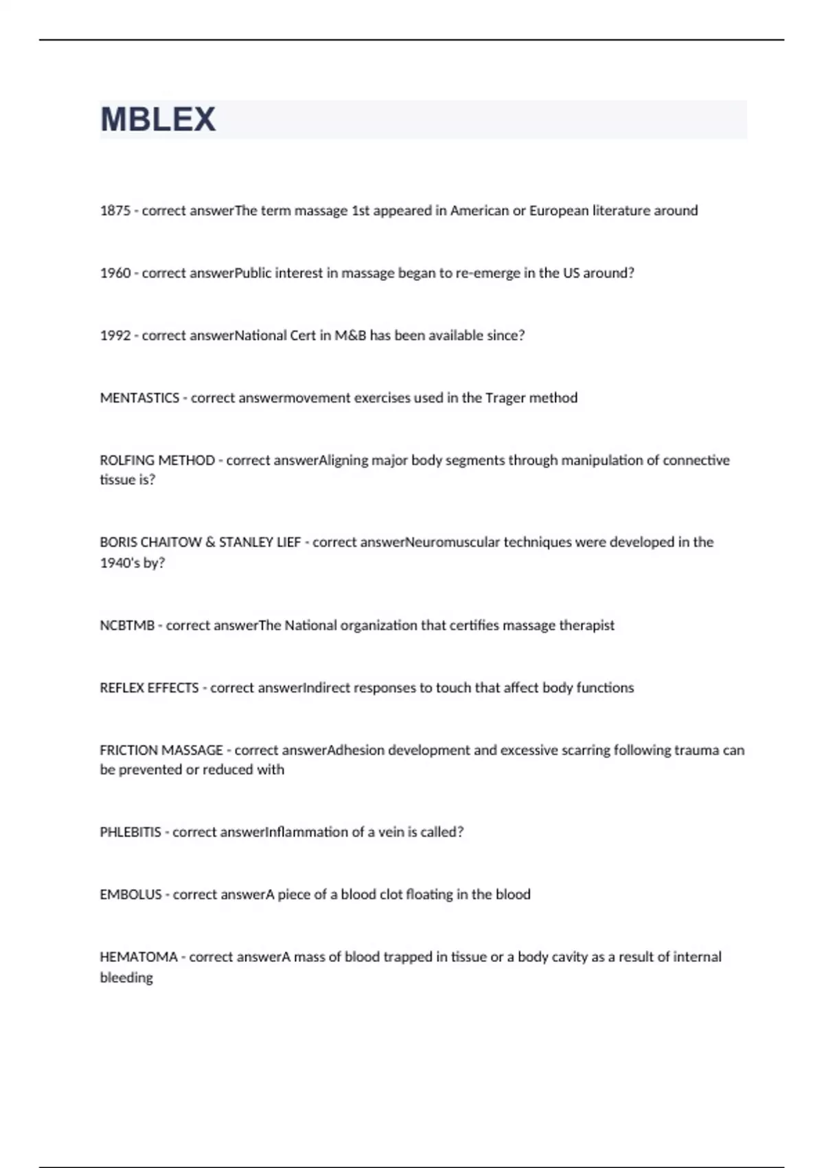 MBLEX exam 2023 with 100% accurate answers