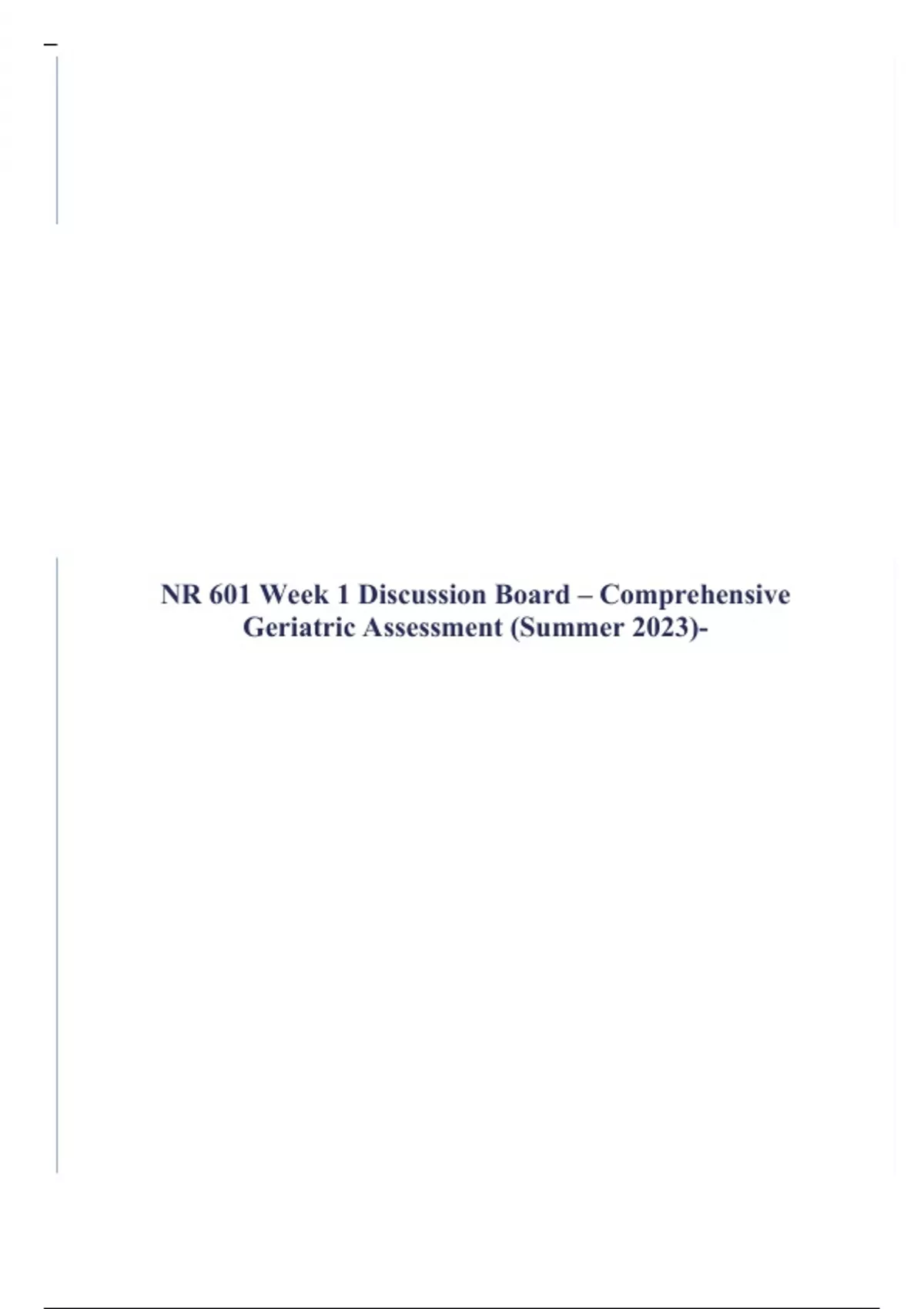 NR 601 Week 1 Discussion Board – Comprehensive Geriatric Assessment (Summer 2023)-Already Graded A