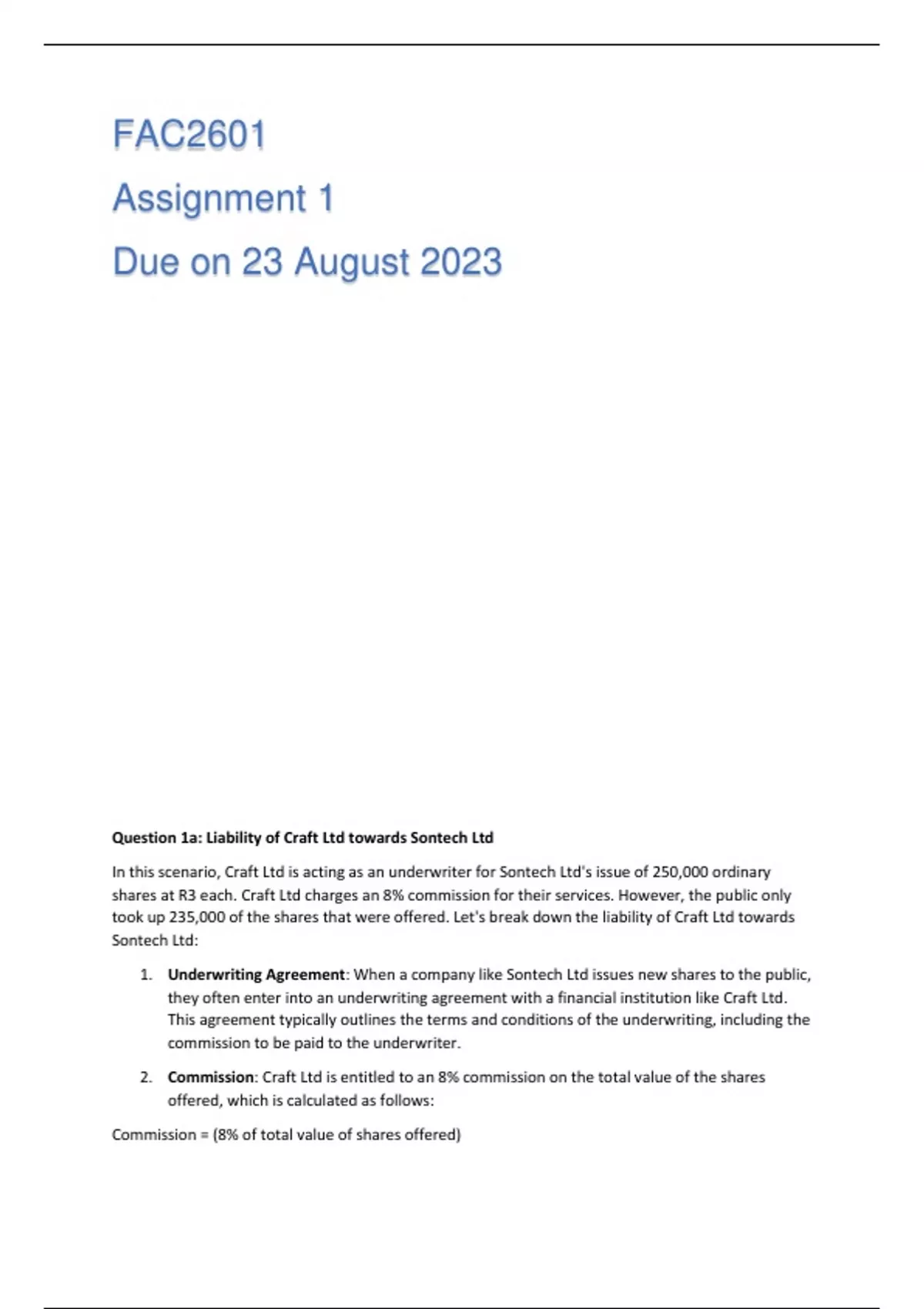 shares at R3 each. Craft Ltd charges an 8% commission for their services. However, the public only