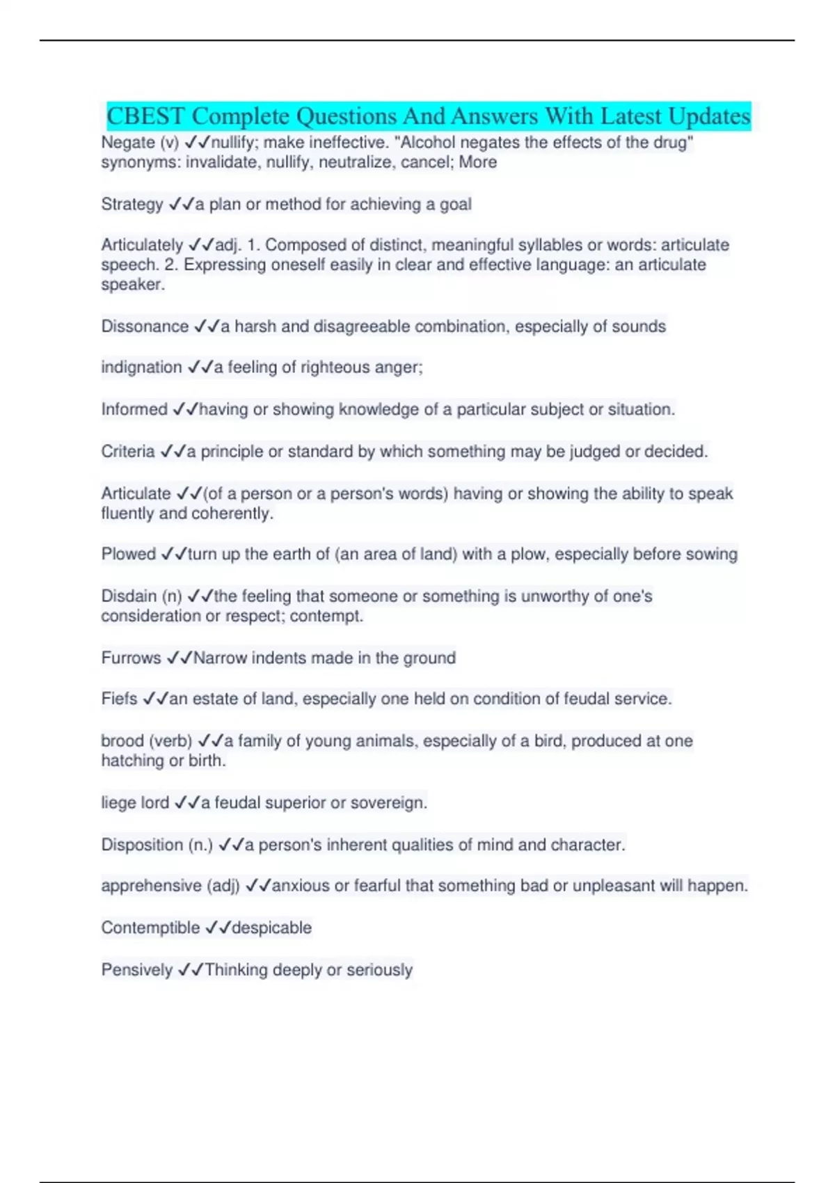 CBEST Complete Questions And Answers With Latest Updates