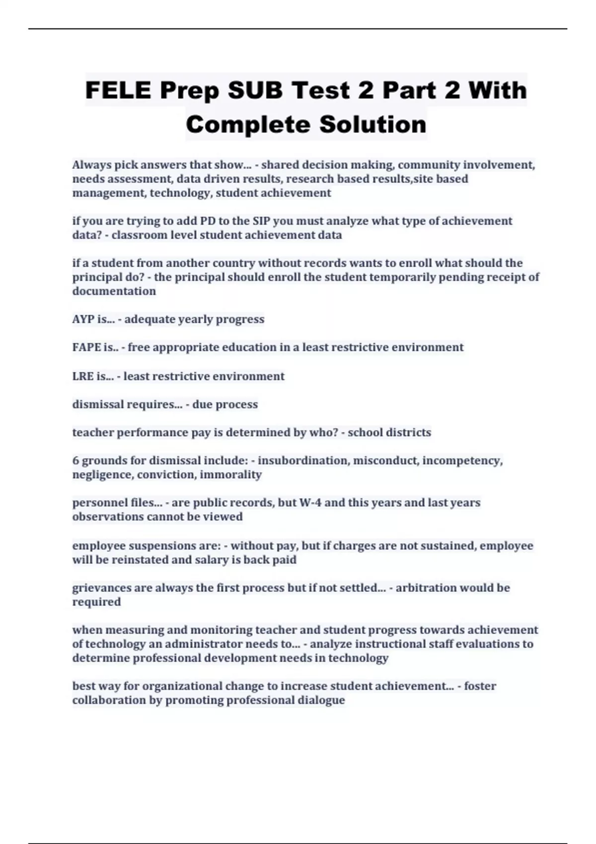 FELE Prep SUB Test 2 Part 2 With Complete Solution
