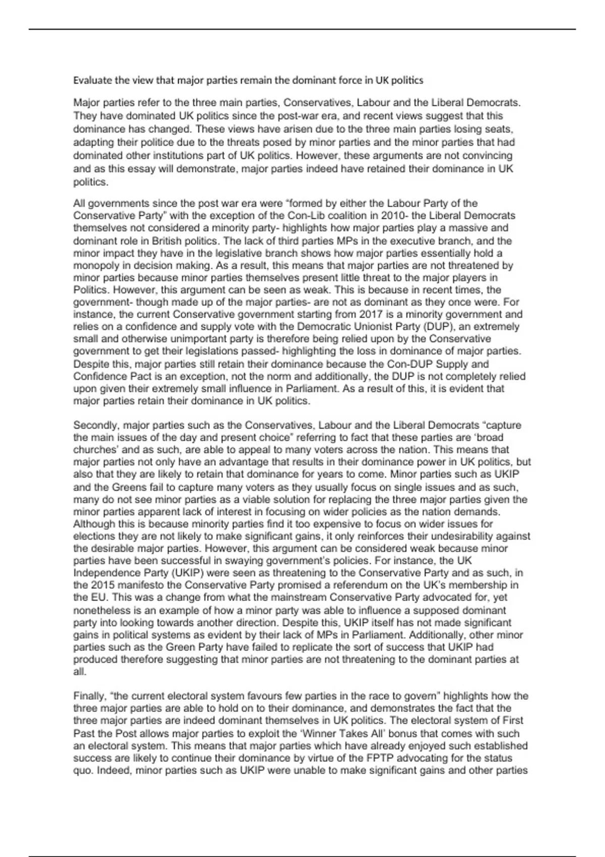 and as this essay will demonstrate, major parties indeed have retained their dominance in UK