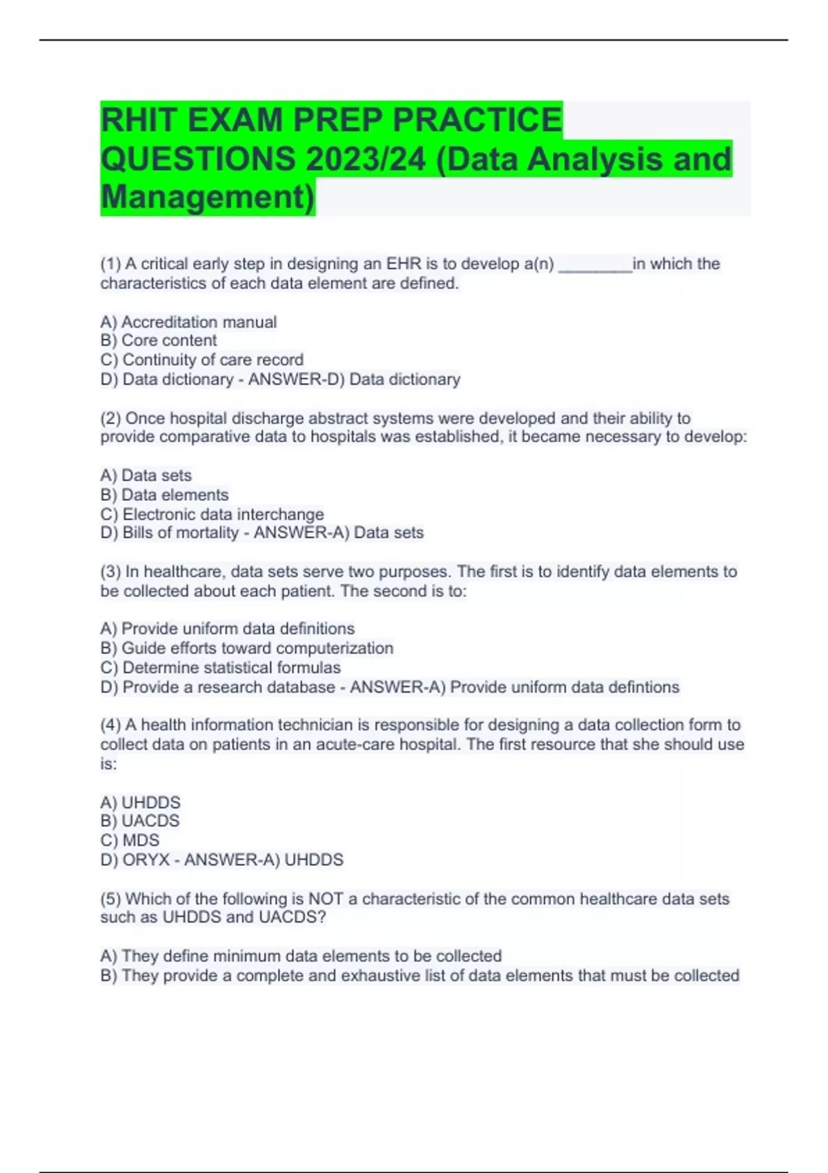 RHIT EXAM PREP PRACTICE QUESTIONS 2023/24 (Data Analysis and Management)
