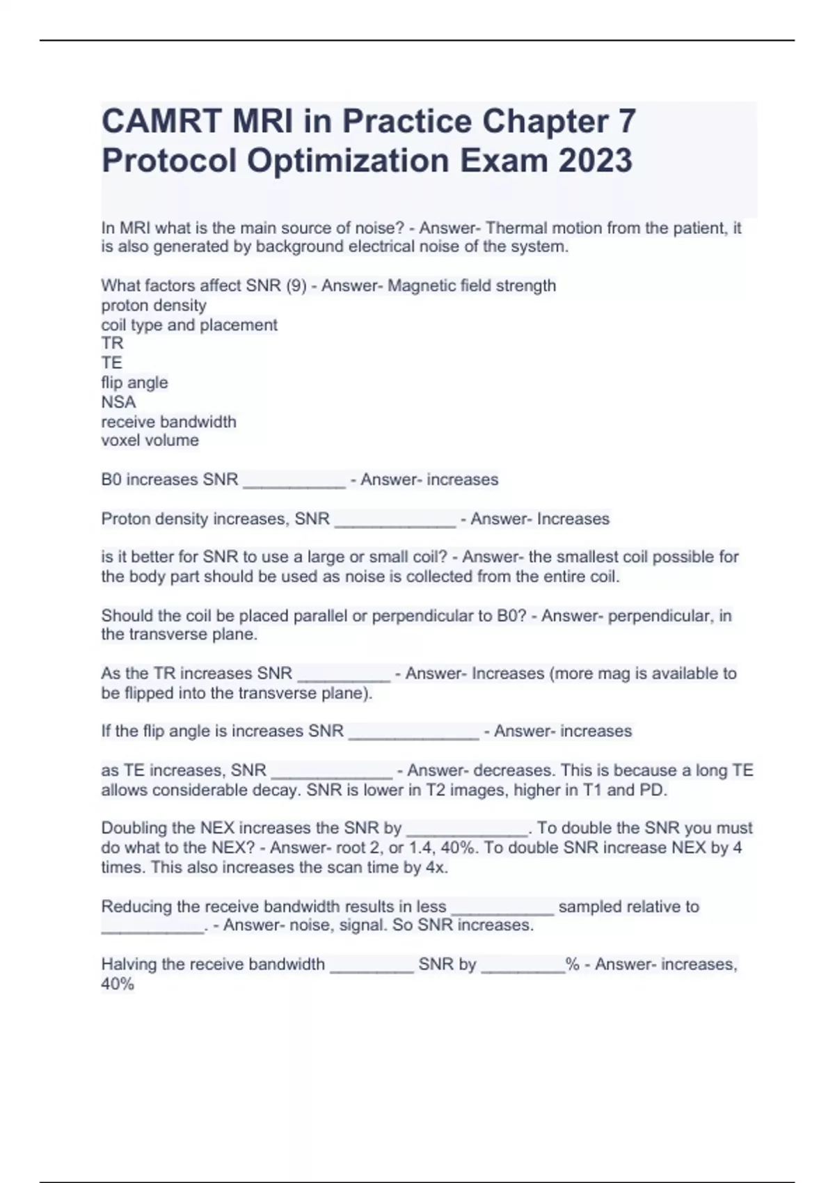 CAMRT MRI in Practice Chapter 7 Protocol Optimization Exam 2023