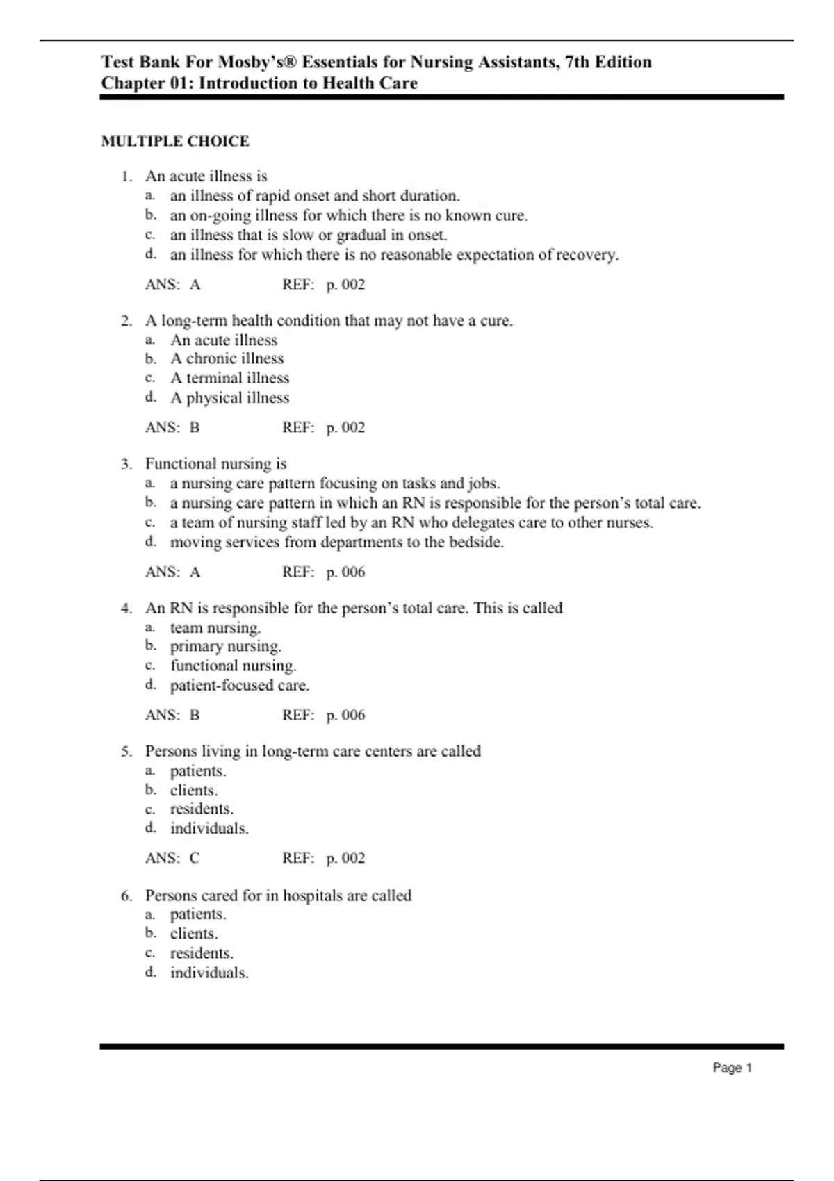 Test Bank For Mosby's Essentials for Nursing Assistants, 7th - 2023 All Chapters